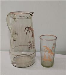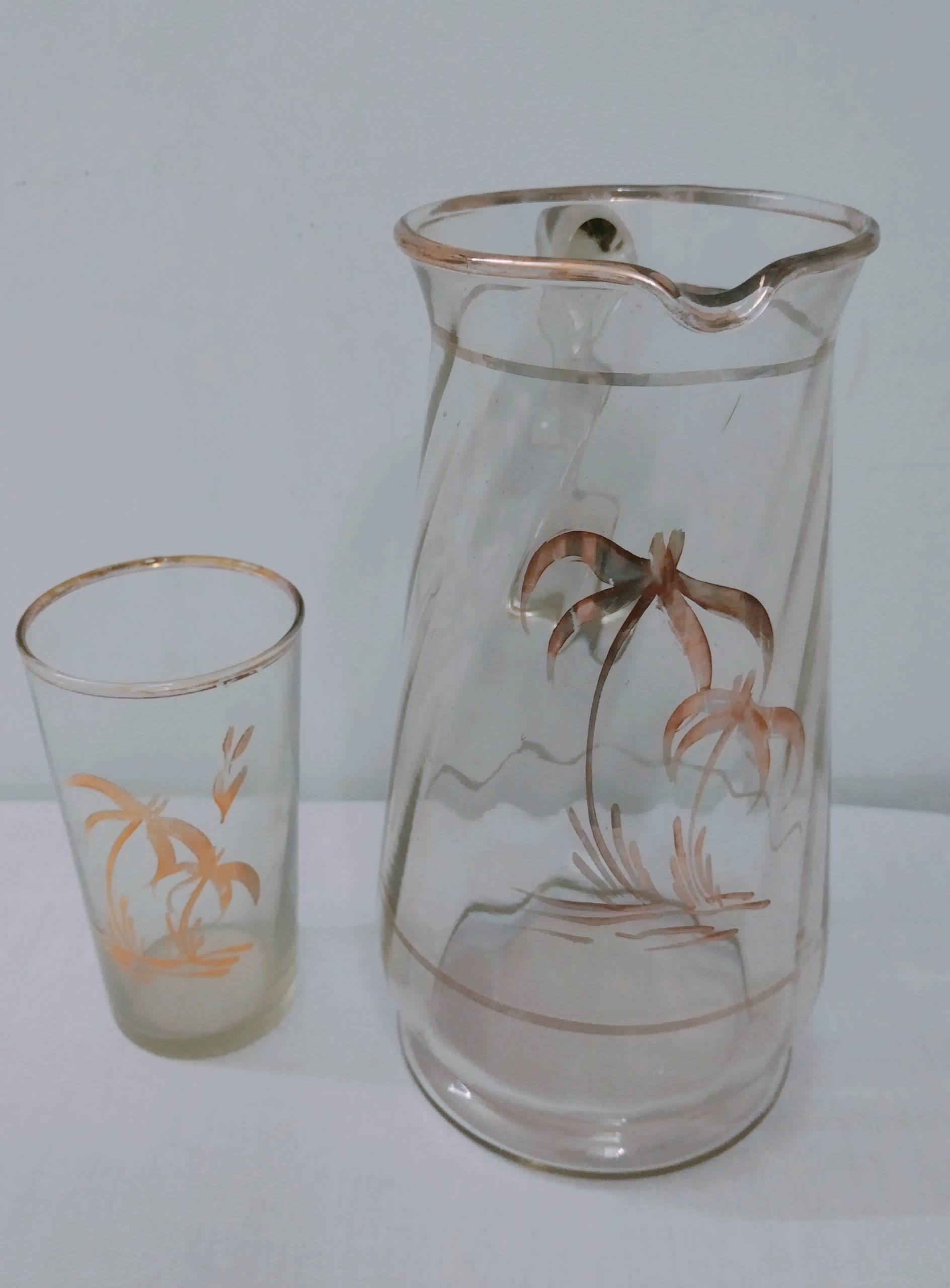 پارچ و لیوان بلور کلکسیونی ضخیم و سالم ، دارای رنگ رفتگی در قسمت طلایی