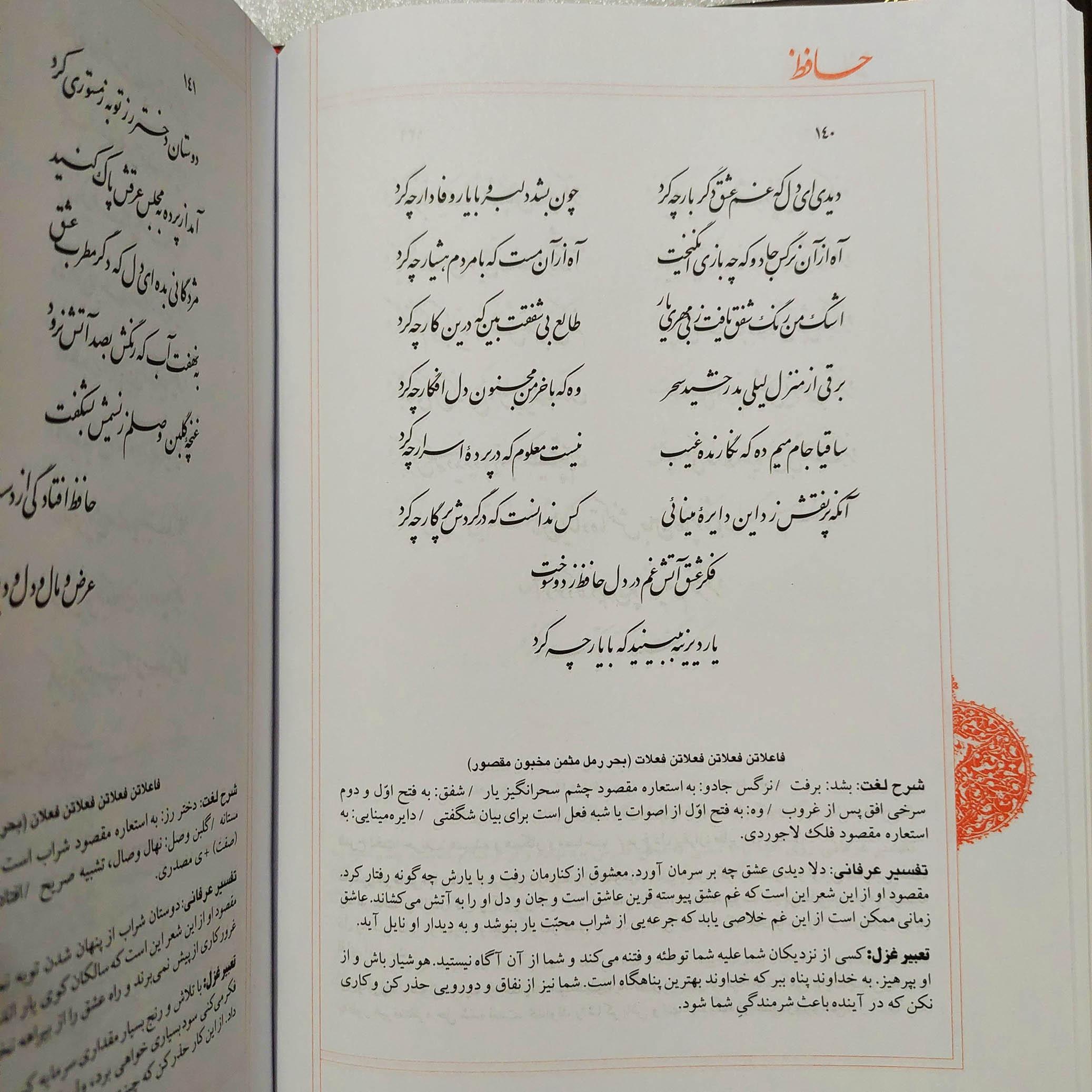 دیوان حافظ - چاپ باکیفیت و چشمنواز - قطع وزیری - طلاکوب - قابدار - کاغذ سفید مرغوب - مناسب هدیه شب یلدا به همراه وزن شعر - شرح لغت - تفسیر عرفانی - تعبیر غزل