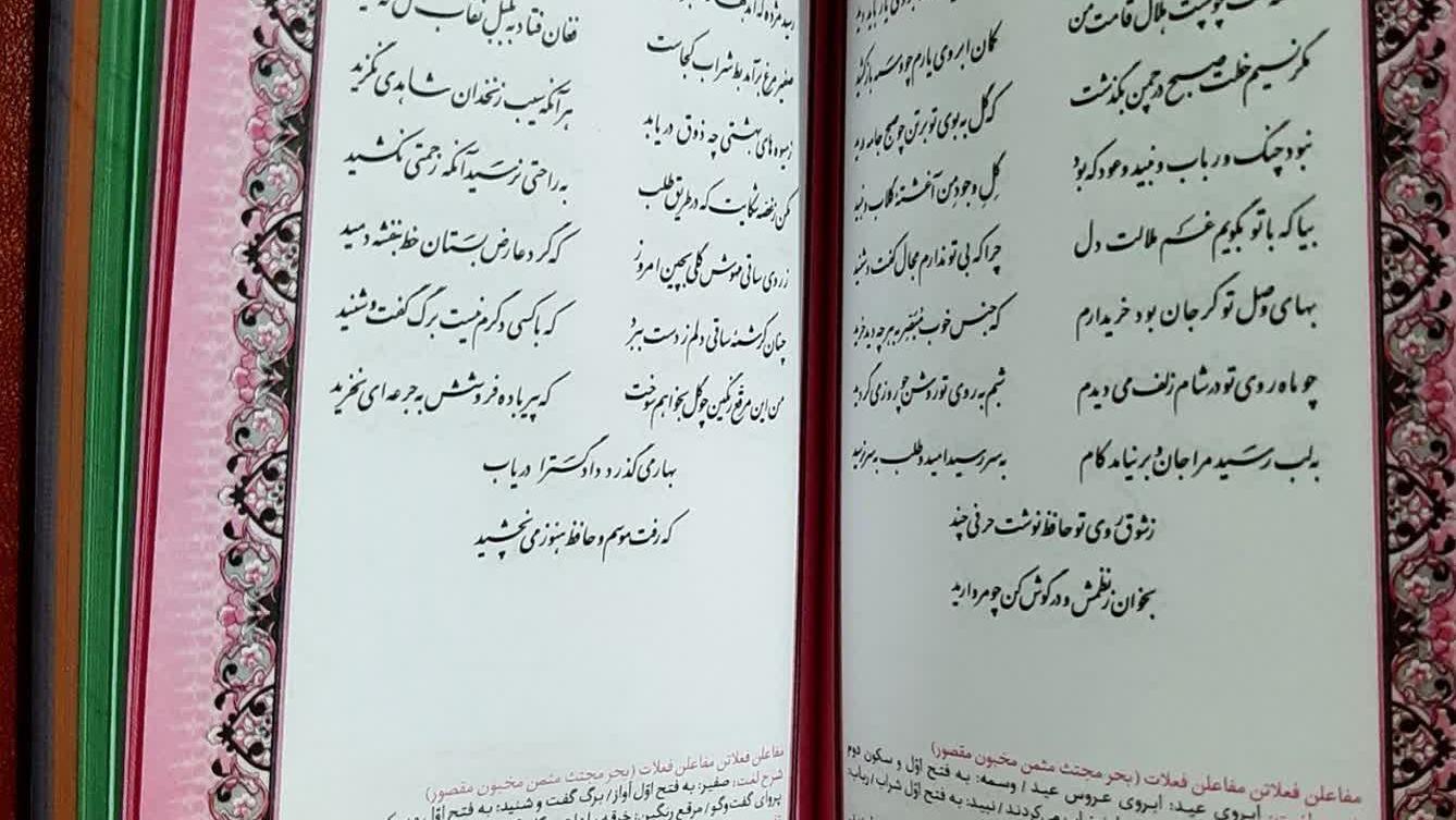 دیوان حافظ پالتویی (جلد ترمو) (هدیه شب یلدا) ابعاد: 16 × 9 سانتیمتر با خط نستعلیق شامل وزن عروضی اشعار شرح لغات، تفسیر عرفانی و تعبیر غزلها انتخابی شایسته برای هدیه شب یلدا