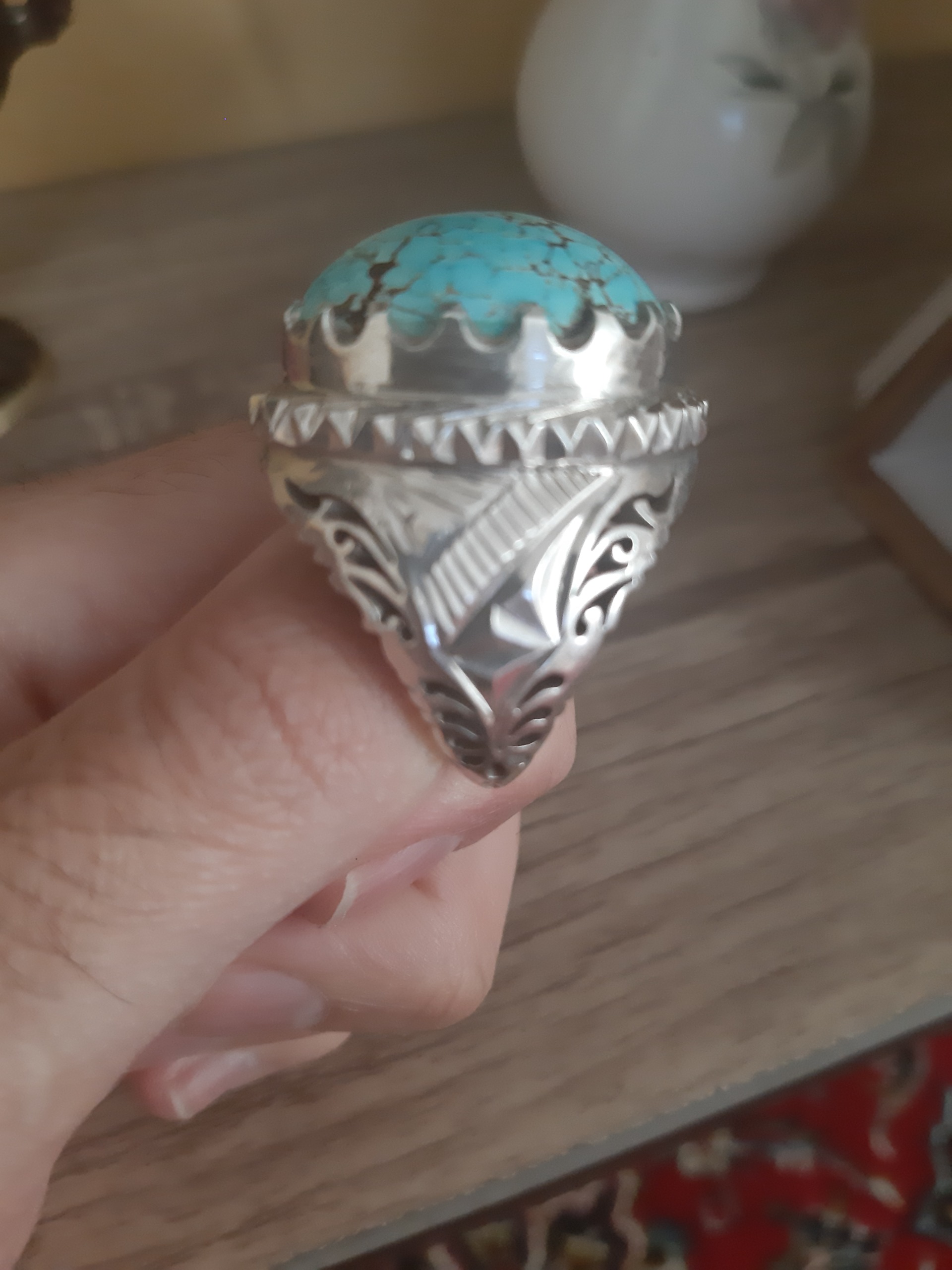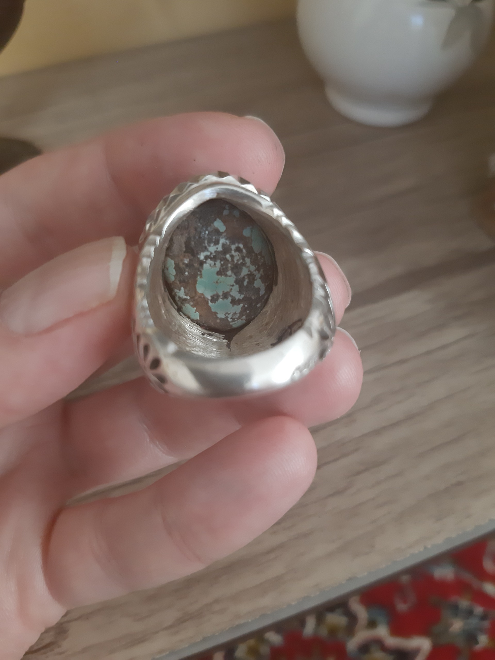 فیروزه نیشابور دست ساز استاد پرهام،انگشتر درحدنو بالای 35گرم زیر قیمت نقره خام گذاشتم