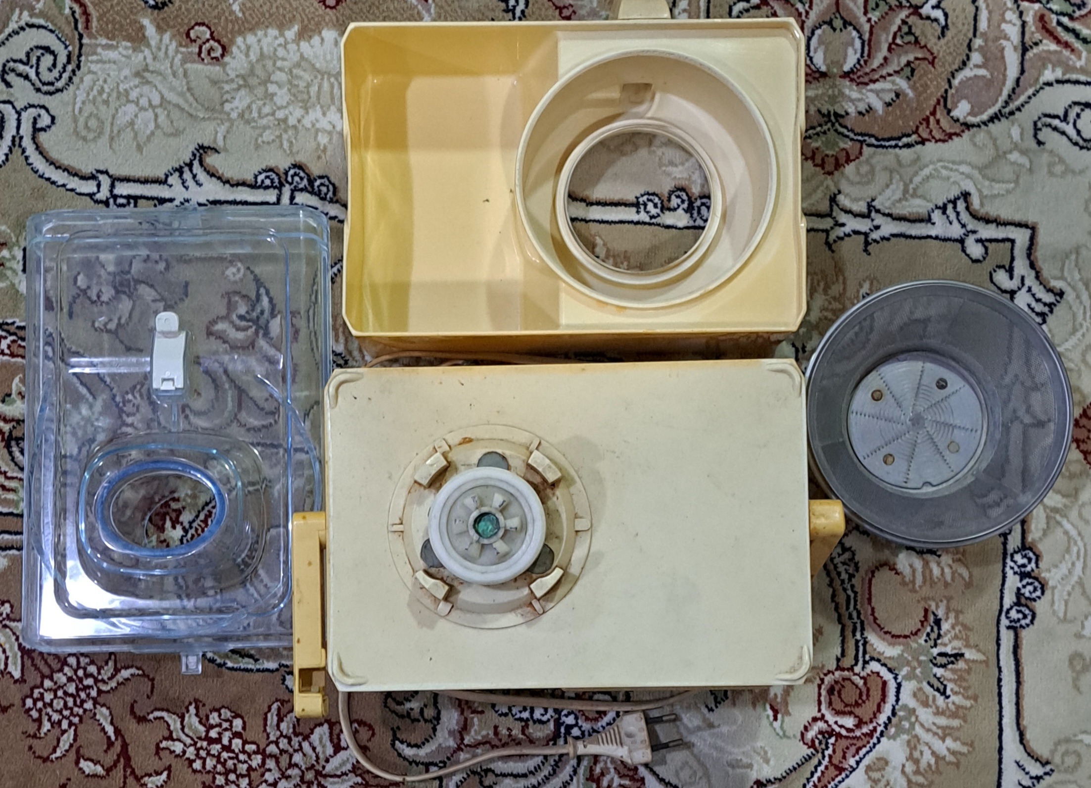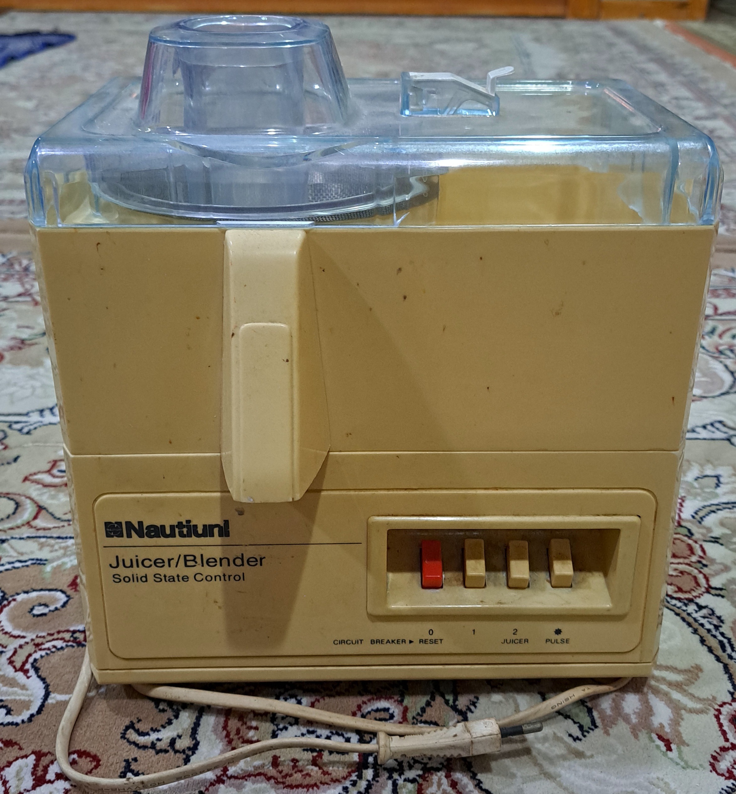 آب میوگیری ومخلوط کن چند کاره که یک آسیاب هم همراه داردو میتوانید پارچ مخلوط کن هم برایش تهیه کنید دستگاه سالم وداریای دو دور کند وتند ودکمه استارت لحظه ای اصل ژاپن
