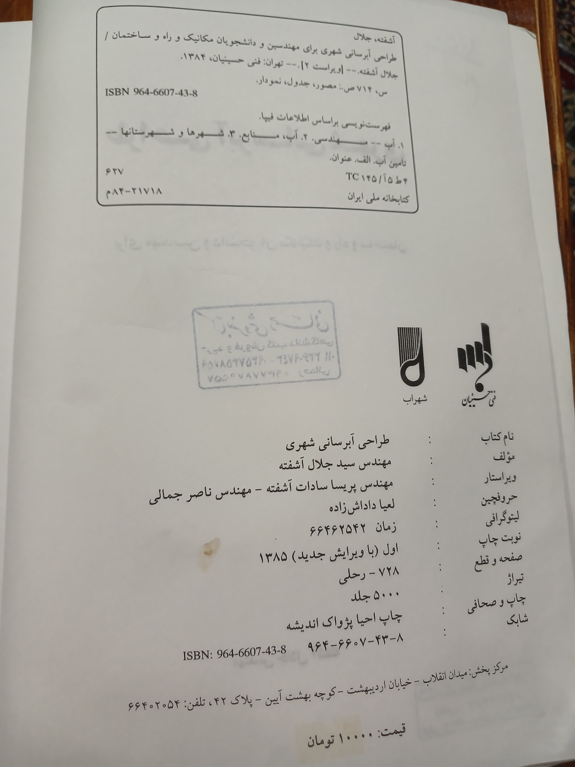 طراحی آبرسانی شهری. مهندس جلال آشفته