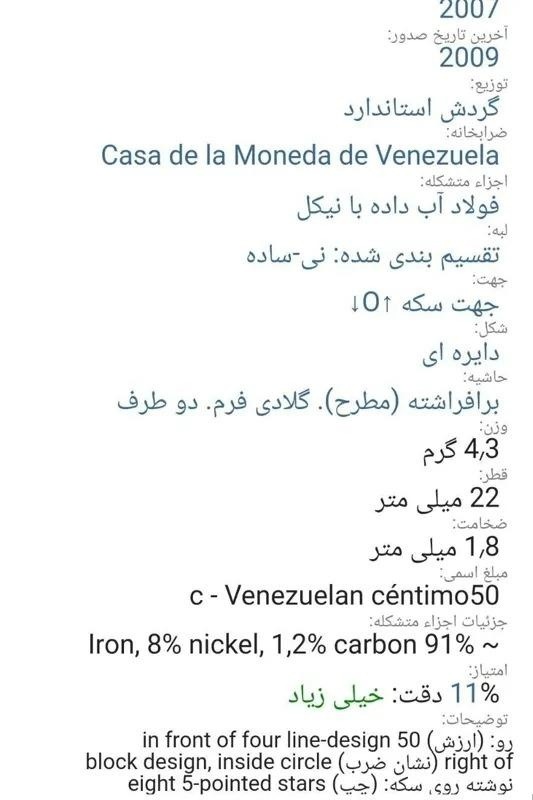 سکه50 سنتیموز ونزوئلا2007(کد3101)
