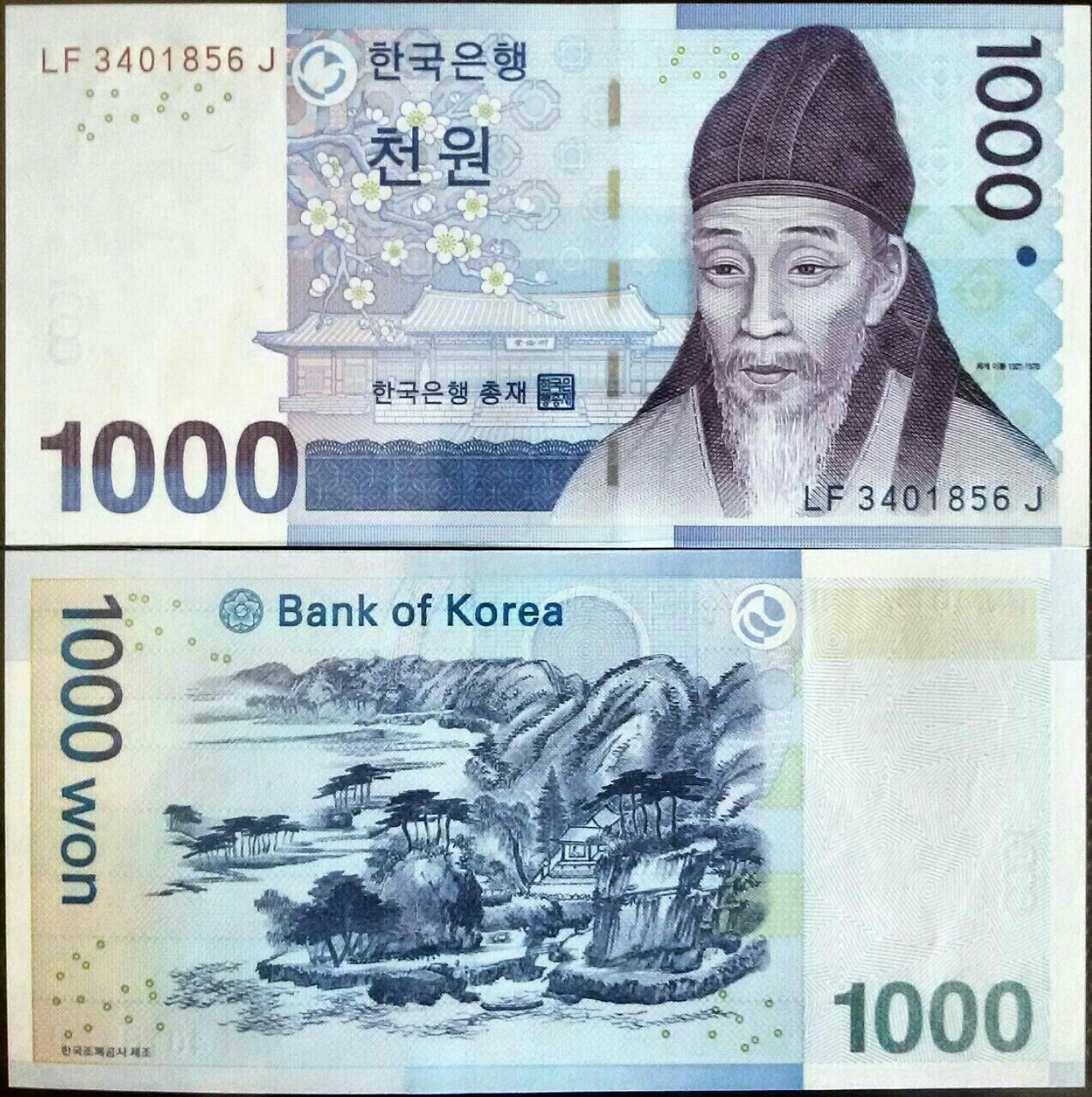 یک جفت اسکناس ارزشمند 1000 وون کره جنوبی