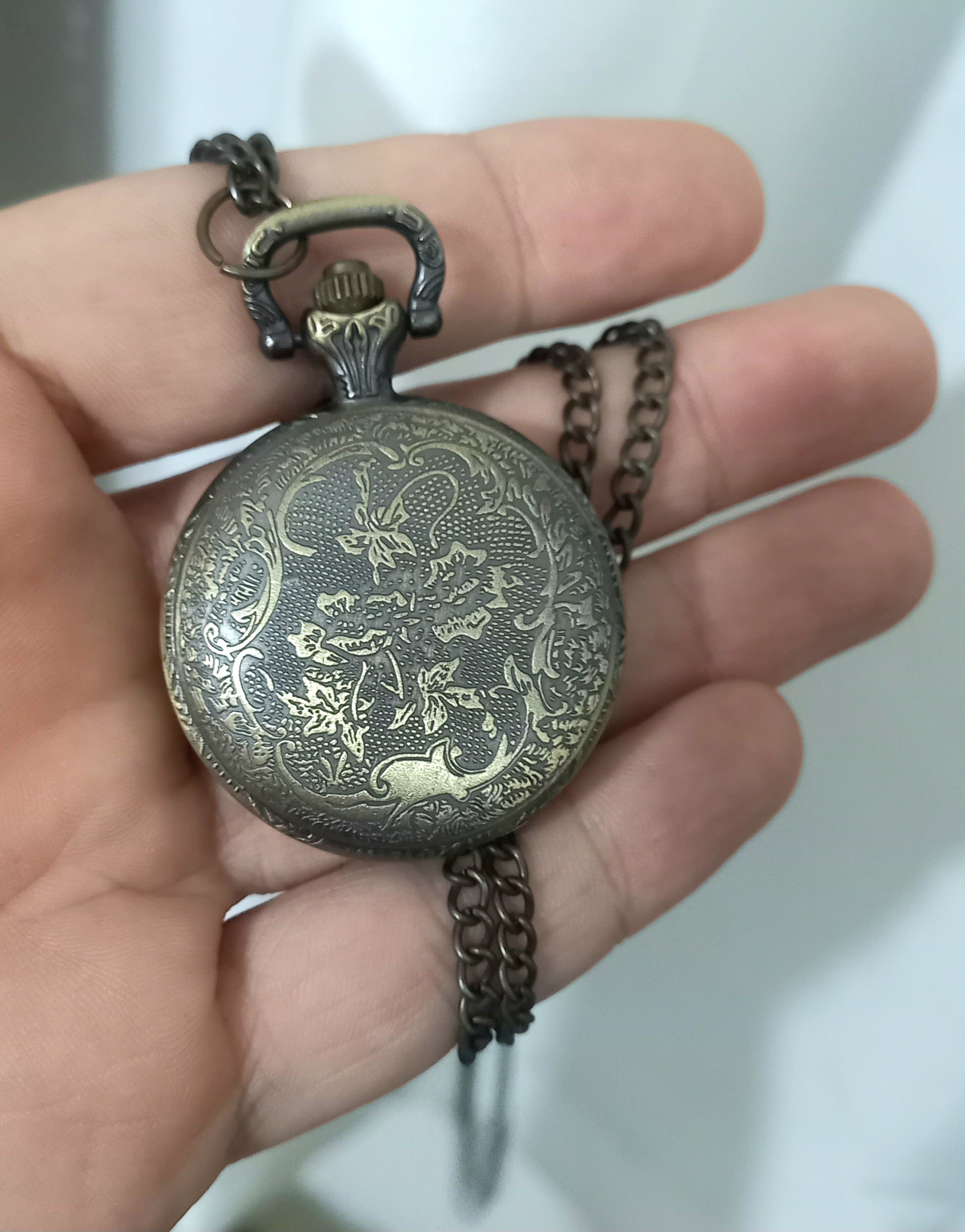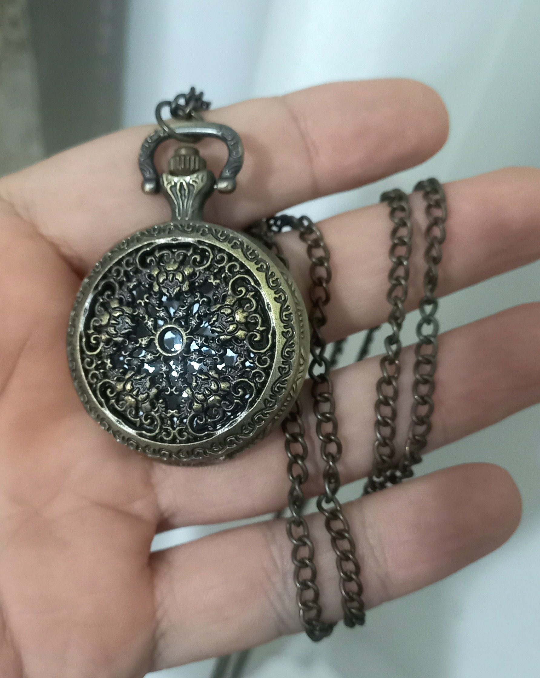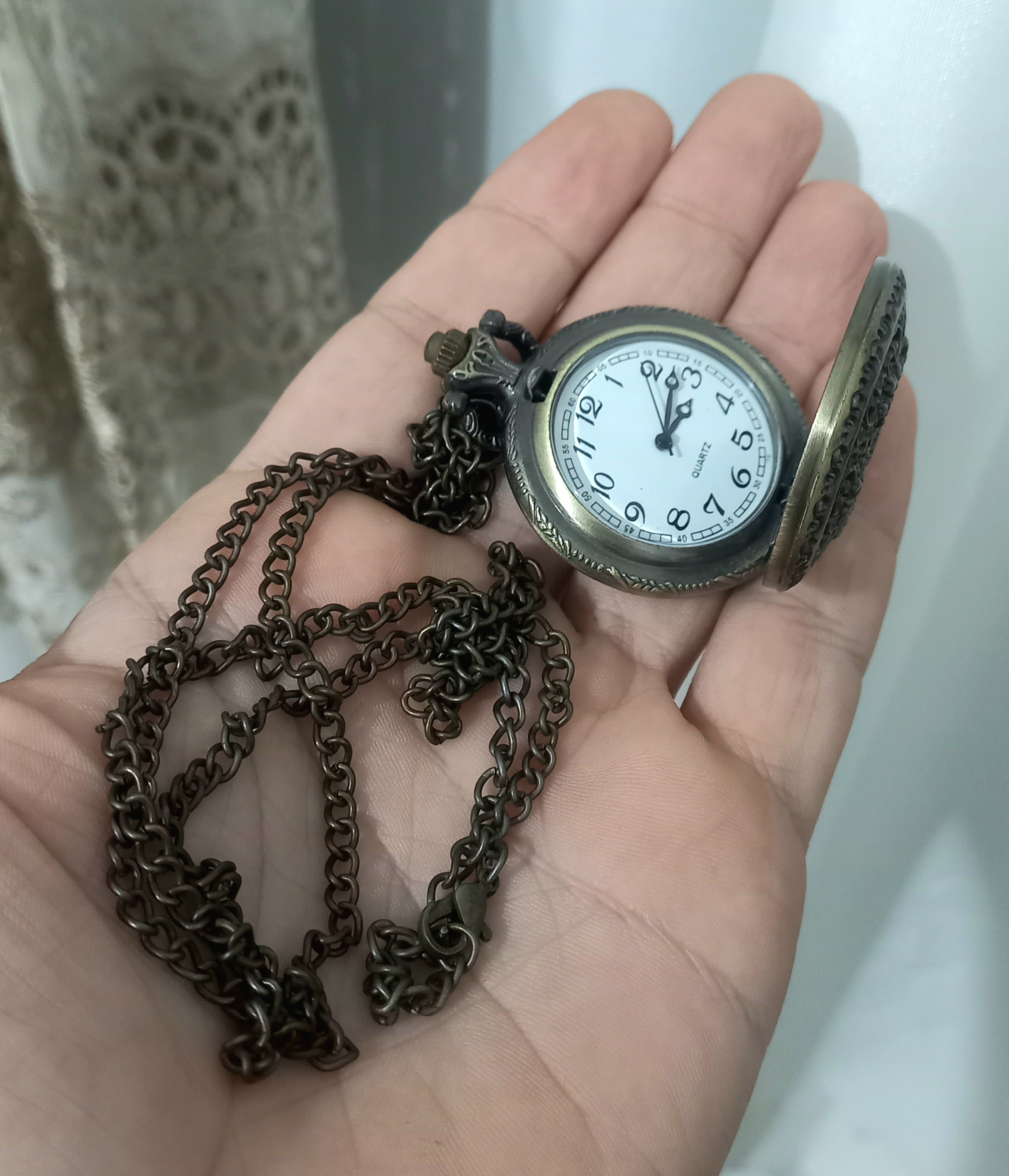 ساعت گردنبندی عقربه ای کلاسیک به رنگ برنزی و کارکرد با باتری. کاملا سالم و دقیق. رنگ ثابت. در جعبه مقوایی ساده تقدیم می شود. لطفا تصاویر و توضیحات با دقت بررسی شود و درصورت وجود ابهام و سوال بنده در خدمت هستم. با کمال تشکر.