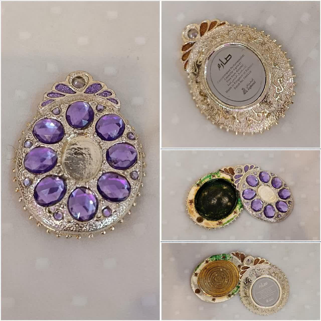 ظرف فلزی عطر جامد 6/5سانت سنگین و ساخت بخرین نگین دار یکی از نگینها افتاده