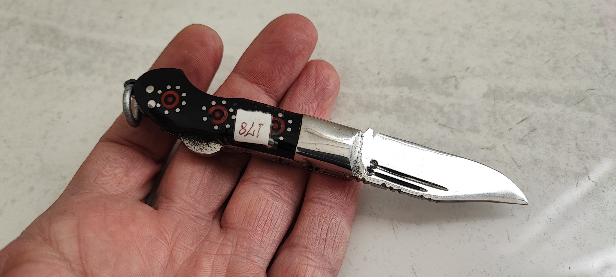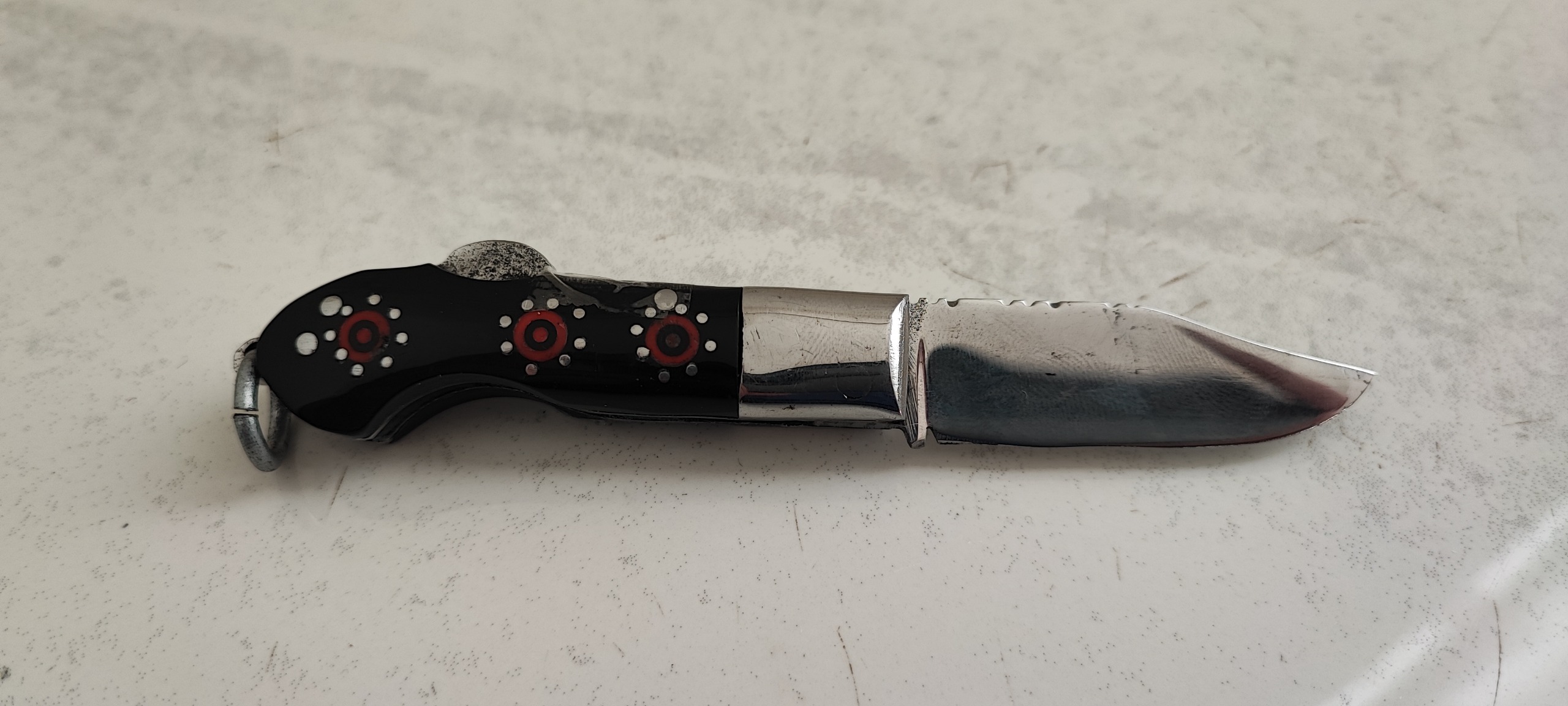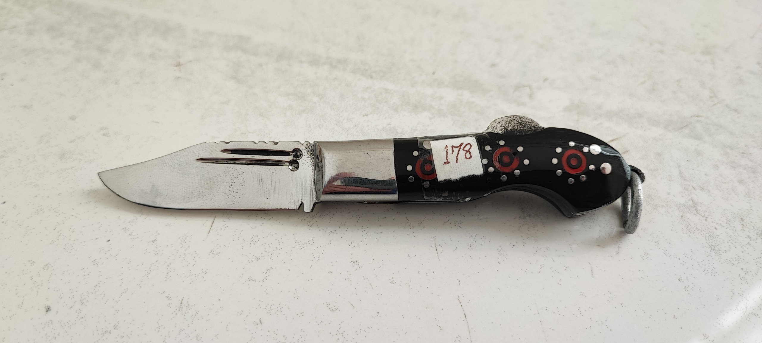 13 سانت طول، تیغ از فنر و دسته فیبر، محکم و خوشدست و بکر و بدون ایراد