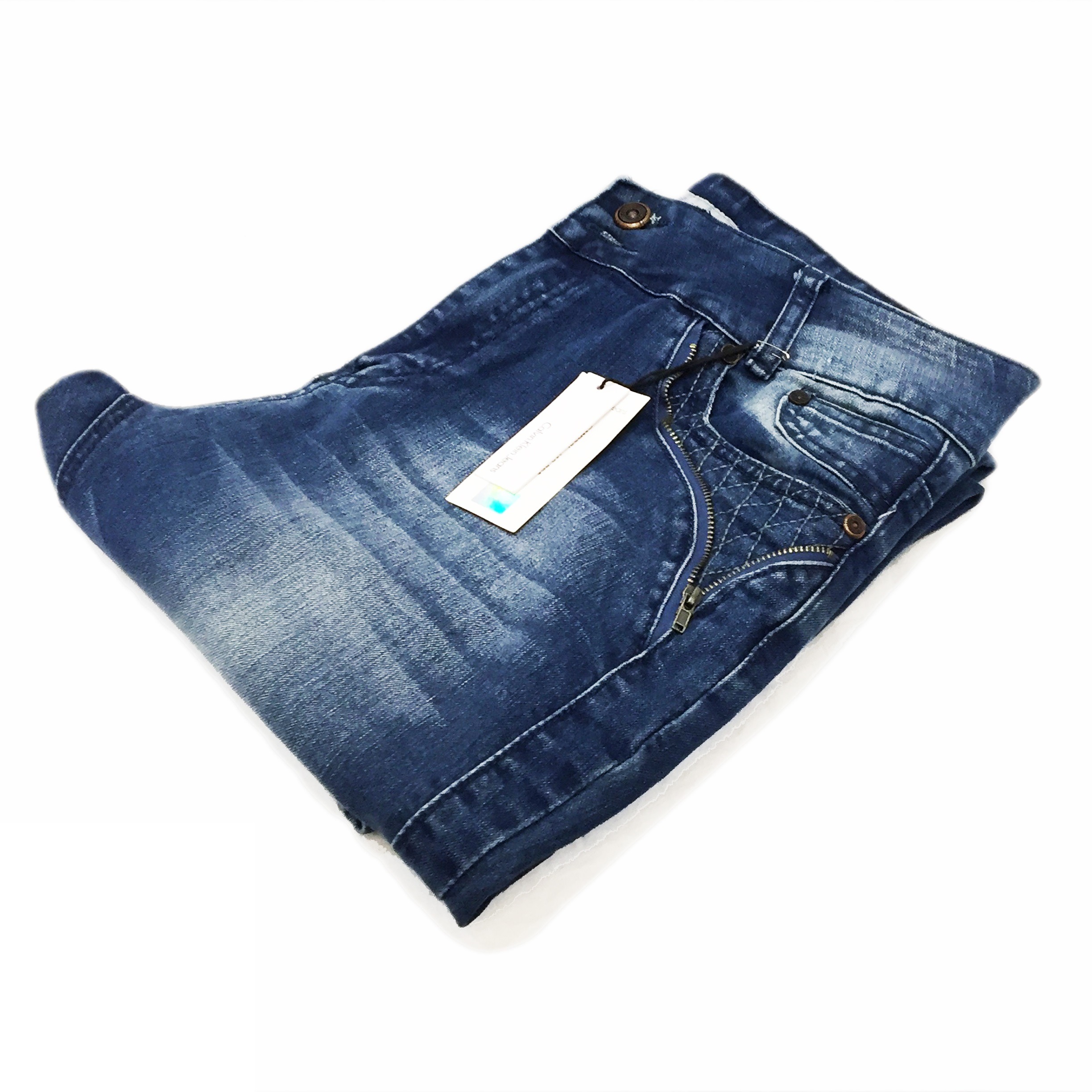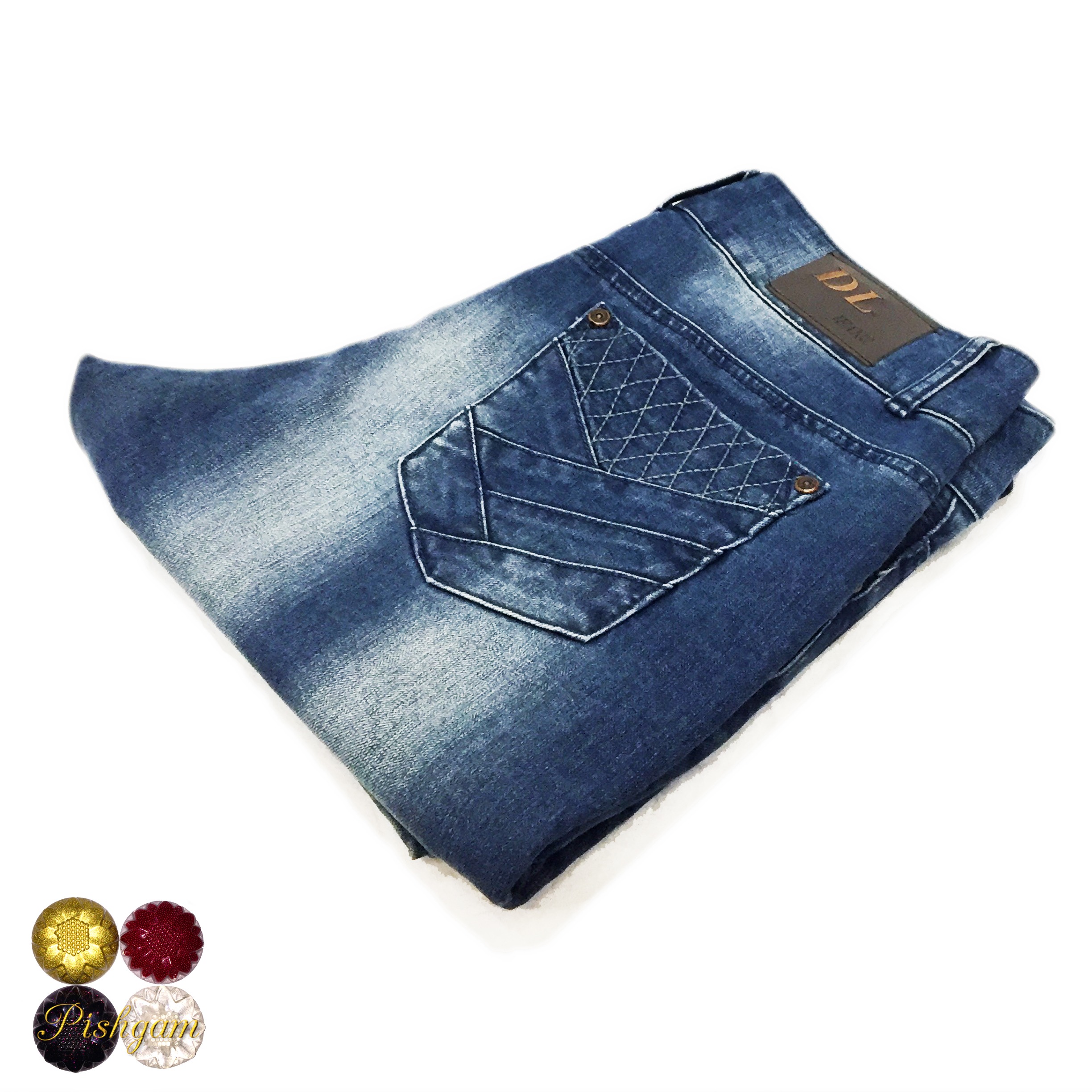 شلوار جین زنانه راسته آبی سنگشور طرح دار سایز 50