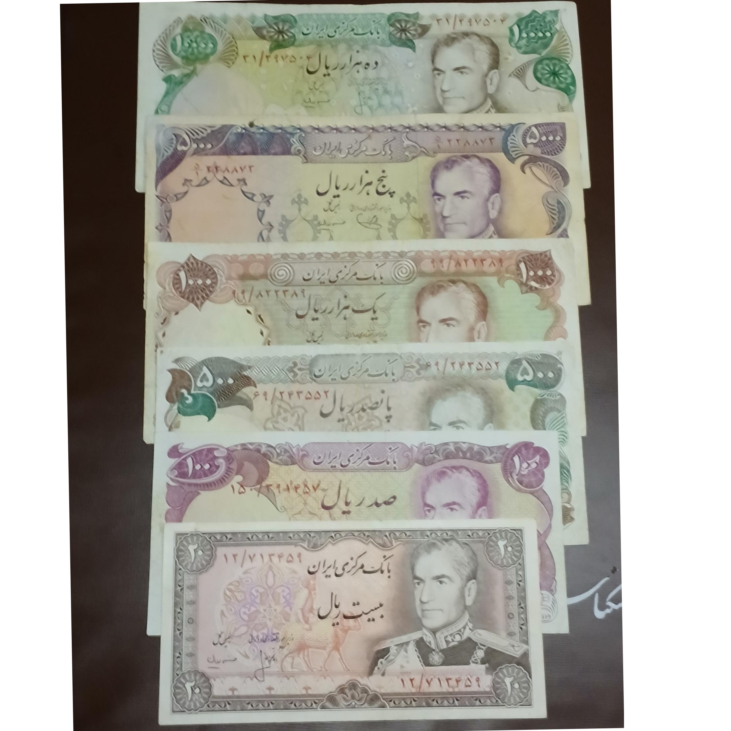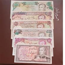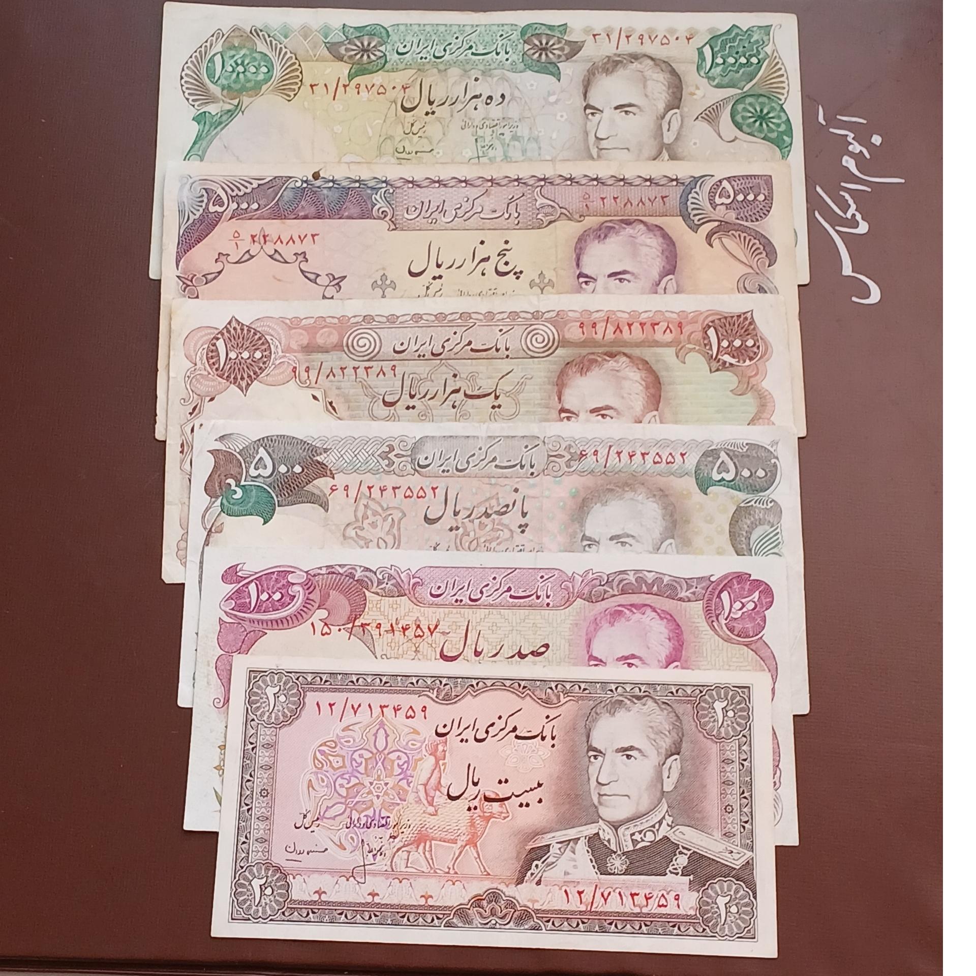 6برگ اسکناس شانه پهن پهلوی،مطابق تصاویر،5000ریالی گرونترین امضای یگانه مهرانه،اماتوکادرش ترمیم داره،هزارتومانیش کیفیت خیلی عالی داره که اونم یه پارگی داشته چسبونده شده،دوبرگشم نو هست،