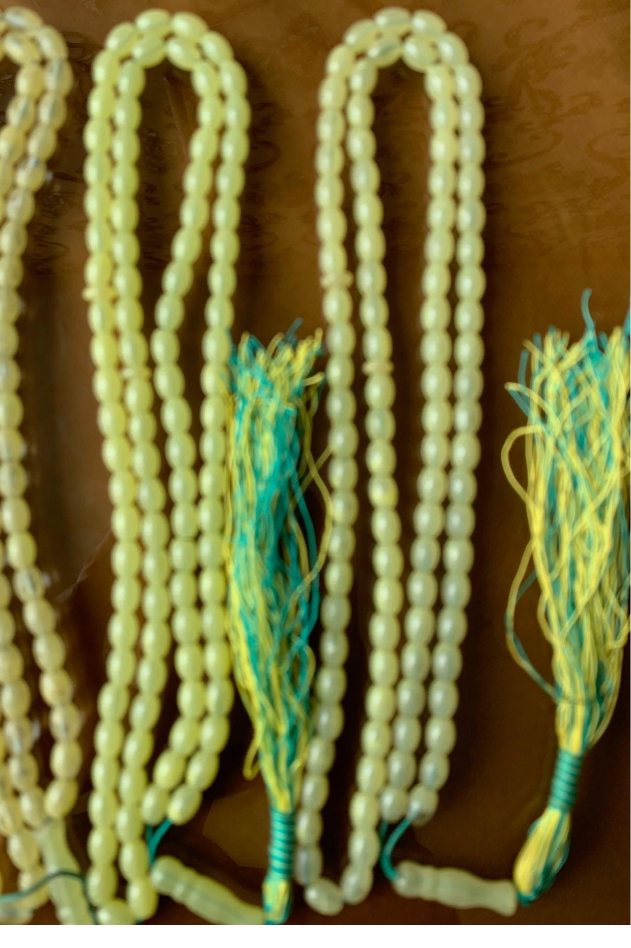 جنس تسبیح ها فکر کنم شیشه باشه اما مطمئن نیستم.سنگین هستند.لطفا با تجربه خودتون خرید کنید.قیمت برای 4 عدد.