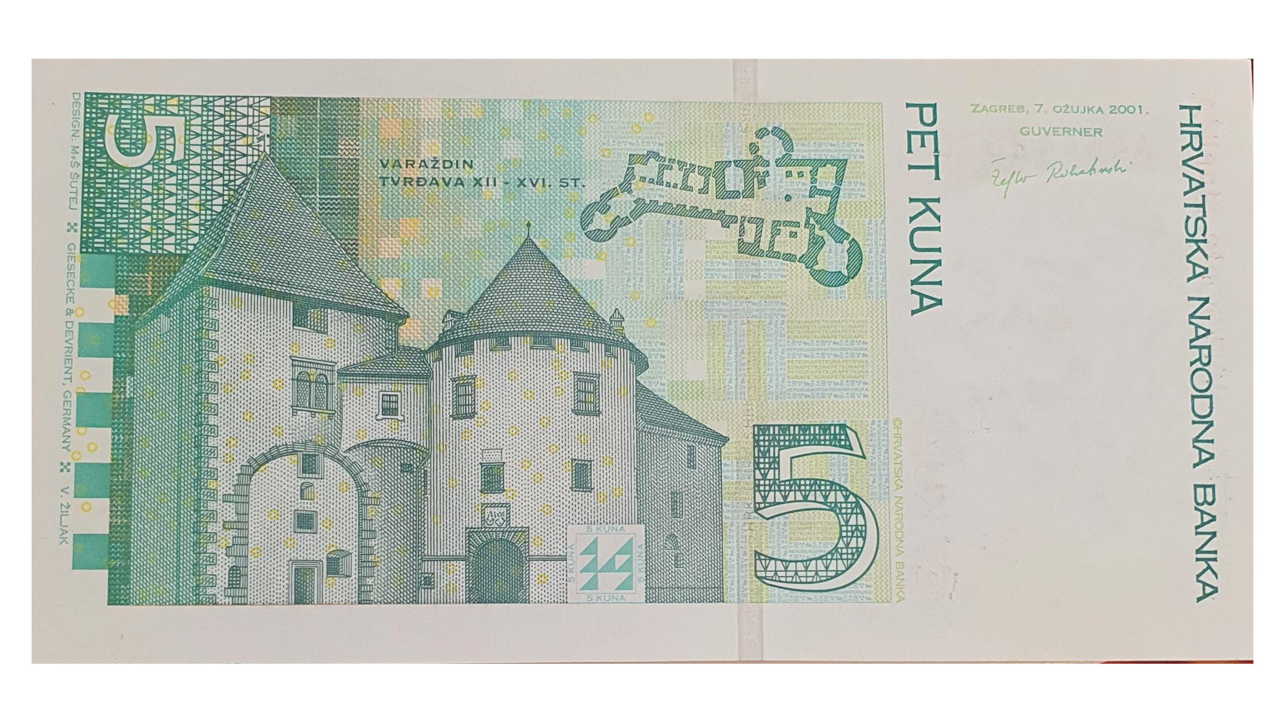 اسکناس کمیاب 5 کونا 2001 کرواسی