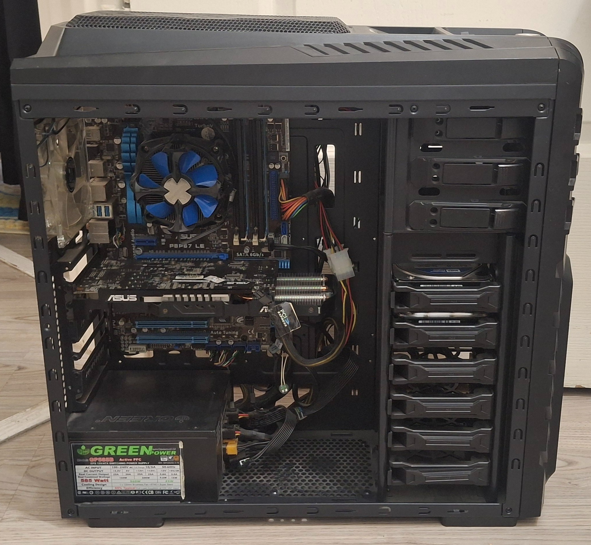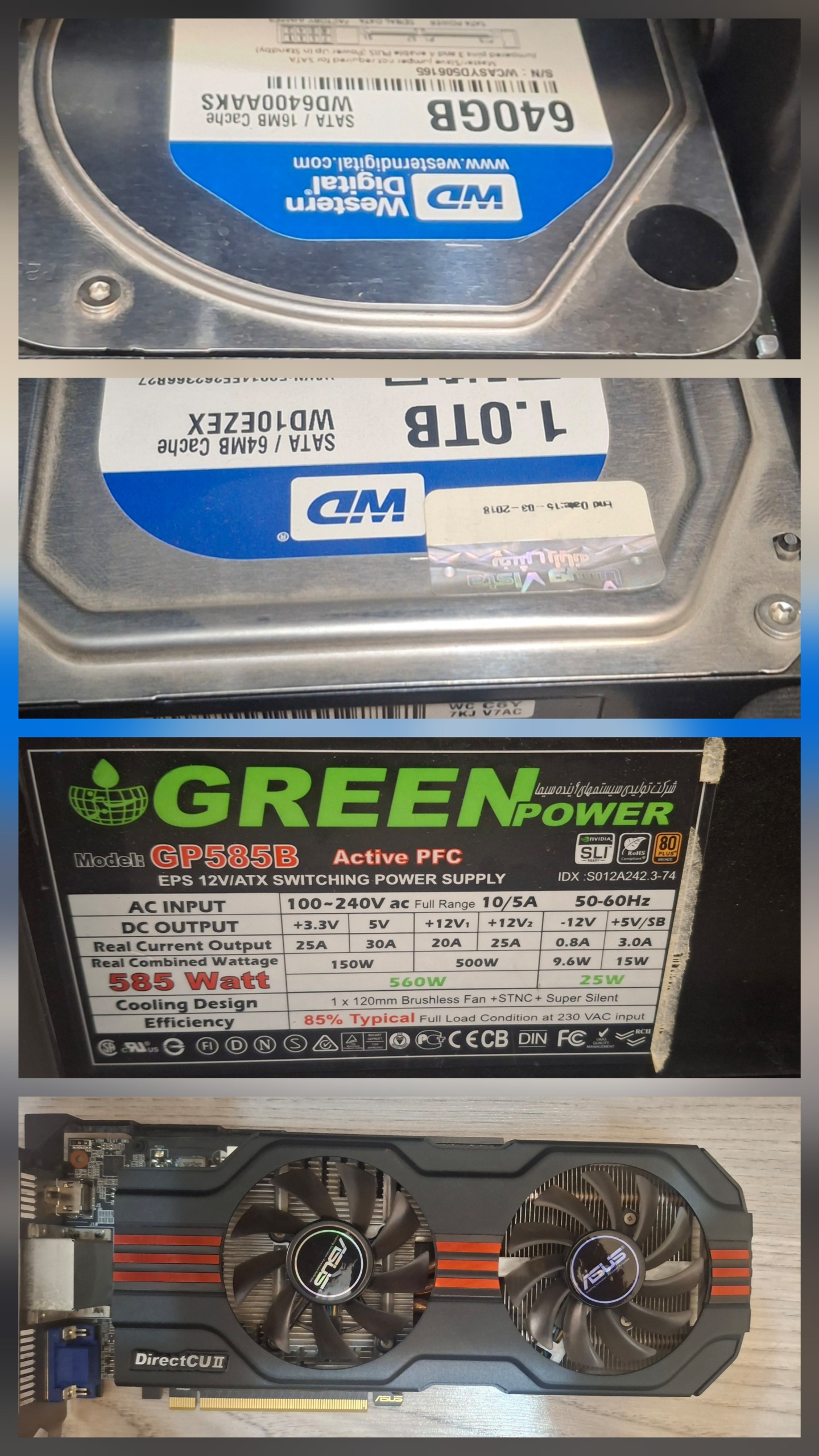 بهمراه مادربرد ایسوس سی پی یو و فن هیت سینک و رم و2عدد هارد 1ترابایت و 640 گیگ،میباشد،اطلاعات دقیق در عکس میباشد.درب بقل کیس چون مدتی دور سلفون پیچیده بود یکم کدر و خط خطی شده.اطلاعت دقیقی خواستین بگین بهتون بگم
