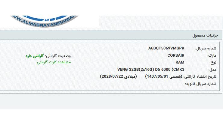 32گیگ رم ddr5 6000 گارانتی
