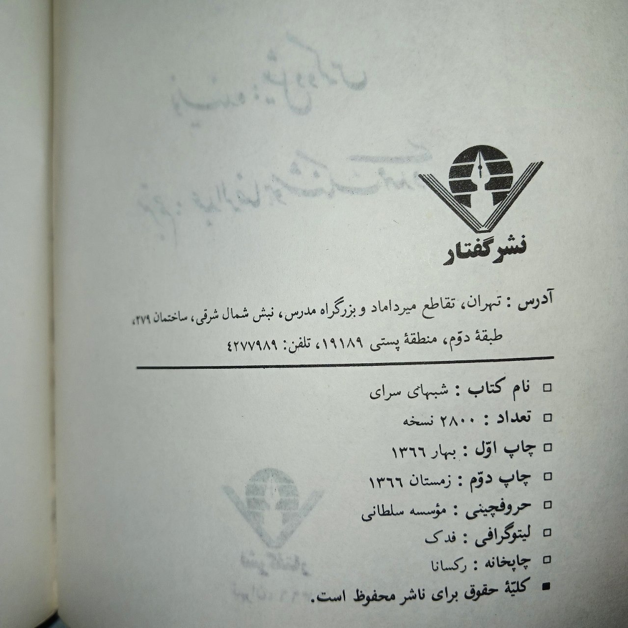 | نوع چاپ کتاب | چاپ اصل |