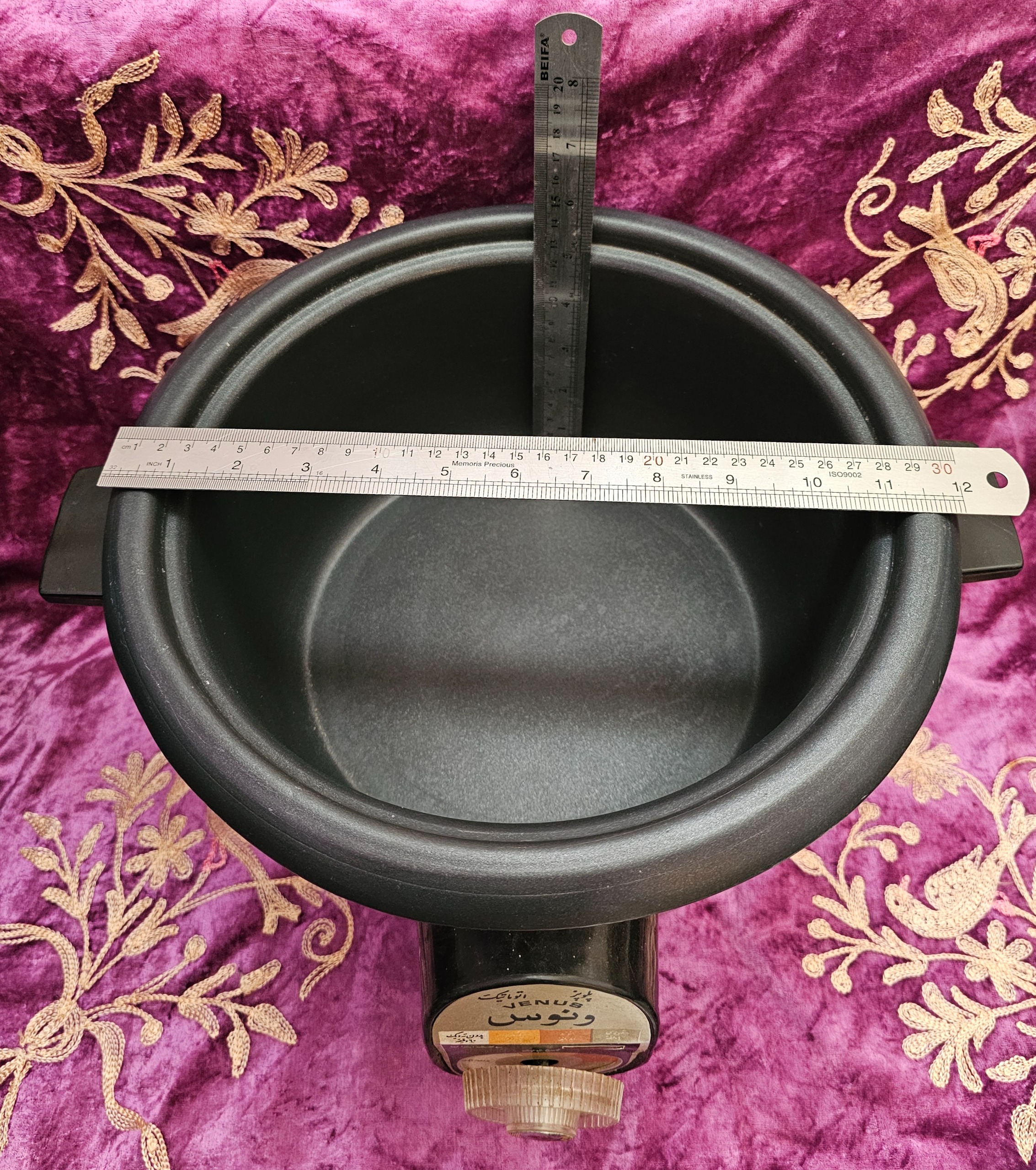 بااحترام به دلیل افزایش قیمت پست وپایین بودن هزینه ارسال درج شده درسایت . قیمت کالا مقطوع__ یک عدد پلوپز برقی برند ونوس قدی می کاملا سالم وتمیز (استفاده نشده تاحدودی) 8یا 10نفره، لک داره ک ب دلیل عدم استفادس همچنین ی لبه قابلمه کمی فرو رفته برای دقت بیشتر با علامت مشخص شده ،مهم نیست  وجهت اطمینان درخرید ذکر شد کیفیت وابعاد دقیقا طبق تصاویر____