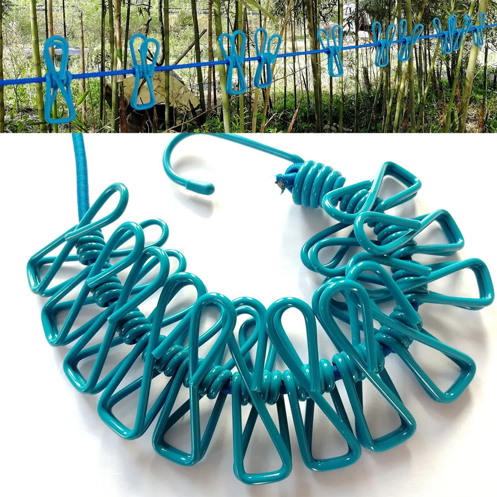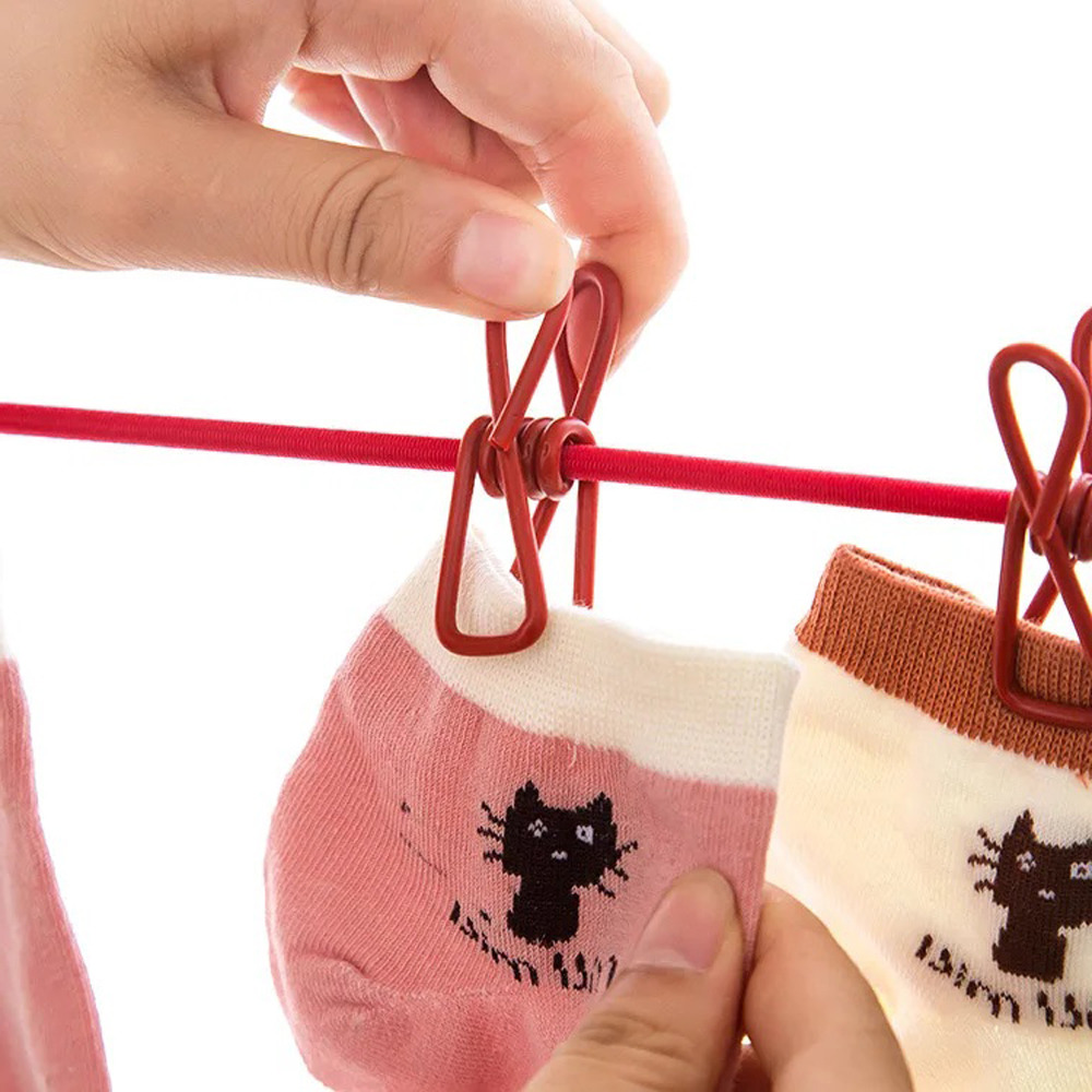 - 12 گیره لباس طراحی شده بر روی بند با قابیت حرکت در طول بند برای ثابت نگه داشتن لباس ها
