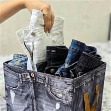 باکس شلوار طرح جین ، محصولی جدید با طراحی ظاهری خاص و منحصر به فرد که حاصل خلاقیت و ذوق تولیدکننده آن است . این کالا یک باکس مستطیل شکل اسکلت دار (اسکلت مقوایی) می باشد که می توانید از فضای داخل آن برای جای دادن شلوار و دیگر لباس ها به صورت تاشده و منظم با امکان دسترسی آسان استفاده کنید ، بدین ترتیب قابلیت بهره برداری از فضای موجود داخل کمد به صورت حداکثری برای کاربر فراهم خواهد شد . دو دستگیره تعبیه شده در دو طرف استند شلوار طرح شلوار جین ، قابلیت جابه جایی و حمل آسان آن را فراهم نموده و در نهایت اگر نیاز به آن نداشته باشید قادر خواهید بود استند را تا کرده و در فضایی اندک داخل کمد و کشو نگهداری کنید . اما اصلی ترین وجه تمایز این محصول جذاب را باید شمایل ظاهری آن عنوان کرد ، چراکه به شکل یه شلوار جین طراحی شده ، این موضوع توانسته جلوه ای متفاوت و خاص به آن ببخشد ، طوری که بتواند نظر اغلب افراد با سلیقه های متنوع و متفاوت را به خود جلب نماید . این کالا در دو رنگ دودی و آبی ارائه می شود که می توانید از آن برای نگهداری شلوار ، لباس و وسایل مختلف دیگر داخل کمد ، کشو و ... استفاده کنید .