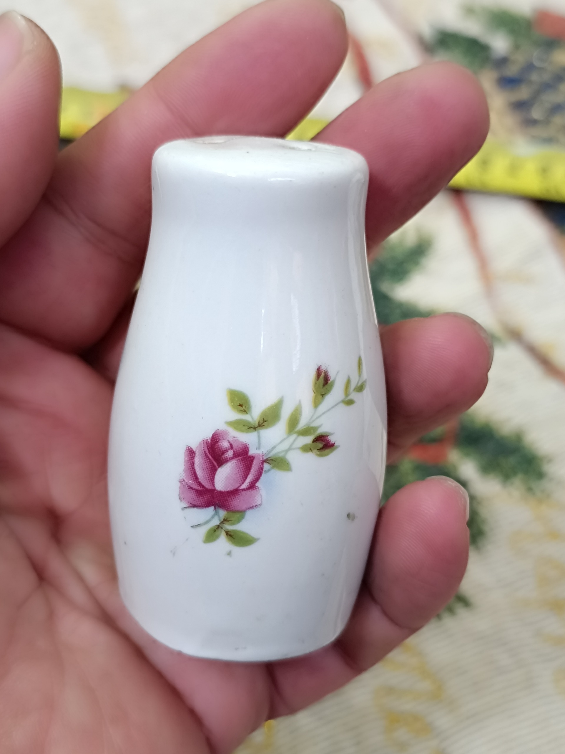 نمکدان چینی قدیمی گل سرخی