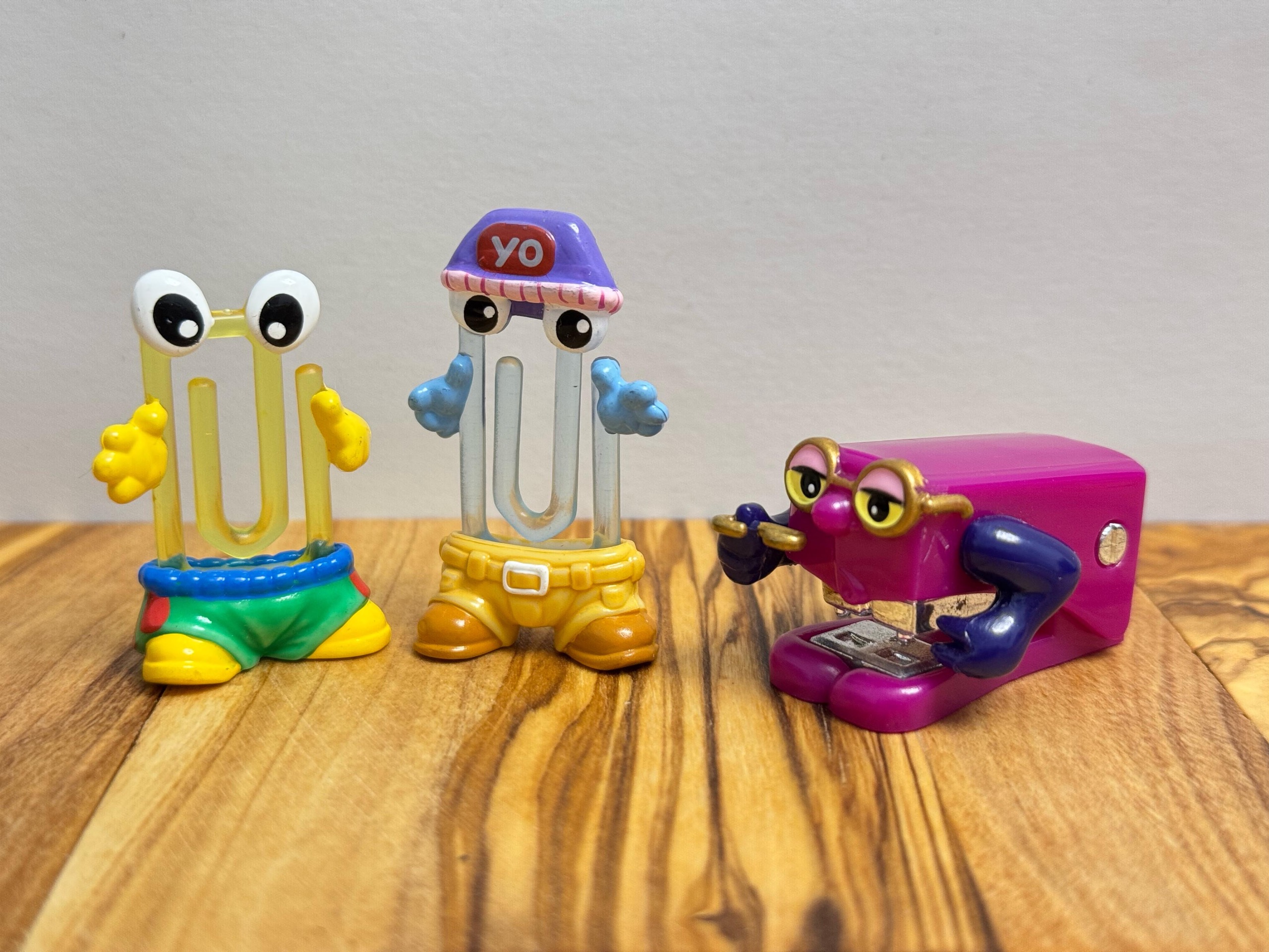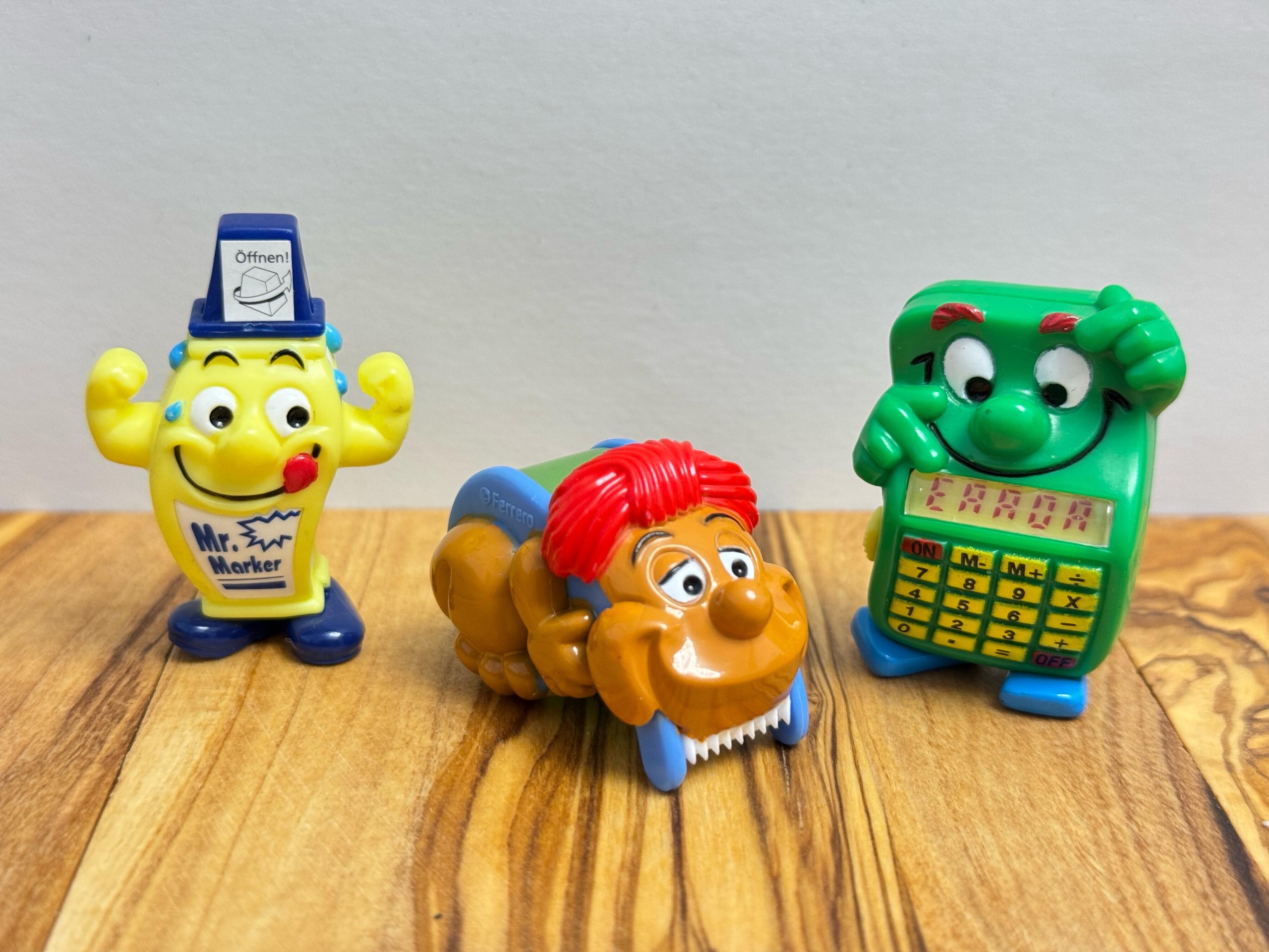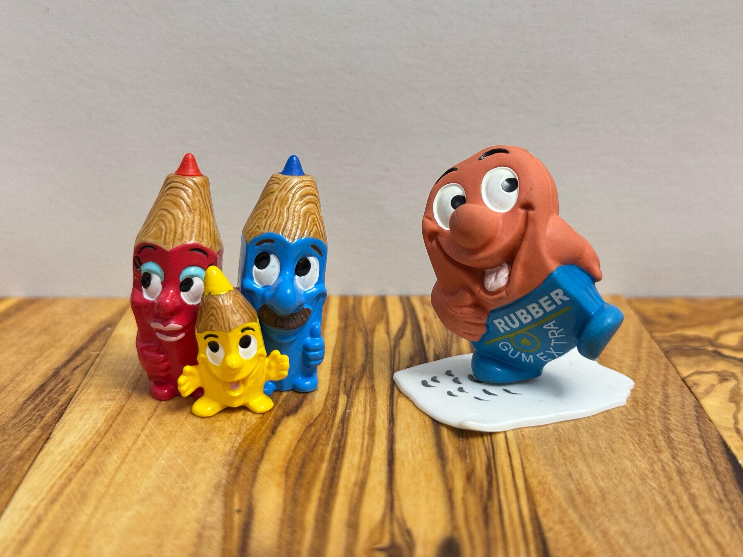 مجموعه کامل جذاب و دوست داشتنی لوازم تحریر (باند دیوونه های روی میز) از جایزه های قدیمی تخم مرغ شانسی کیندر