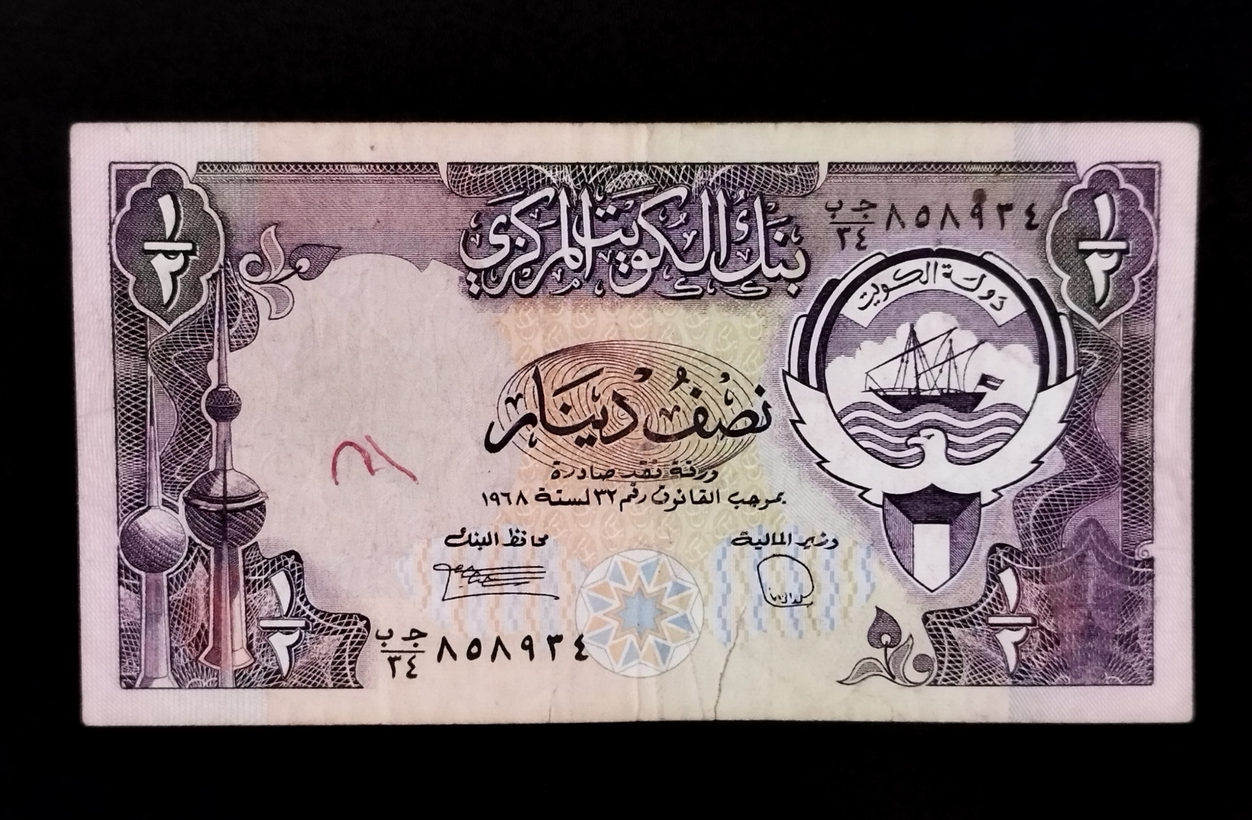 اسکناس 1/2 دینار 1968 جابر احمد جابر الصباح کویت