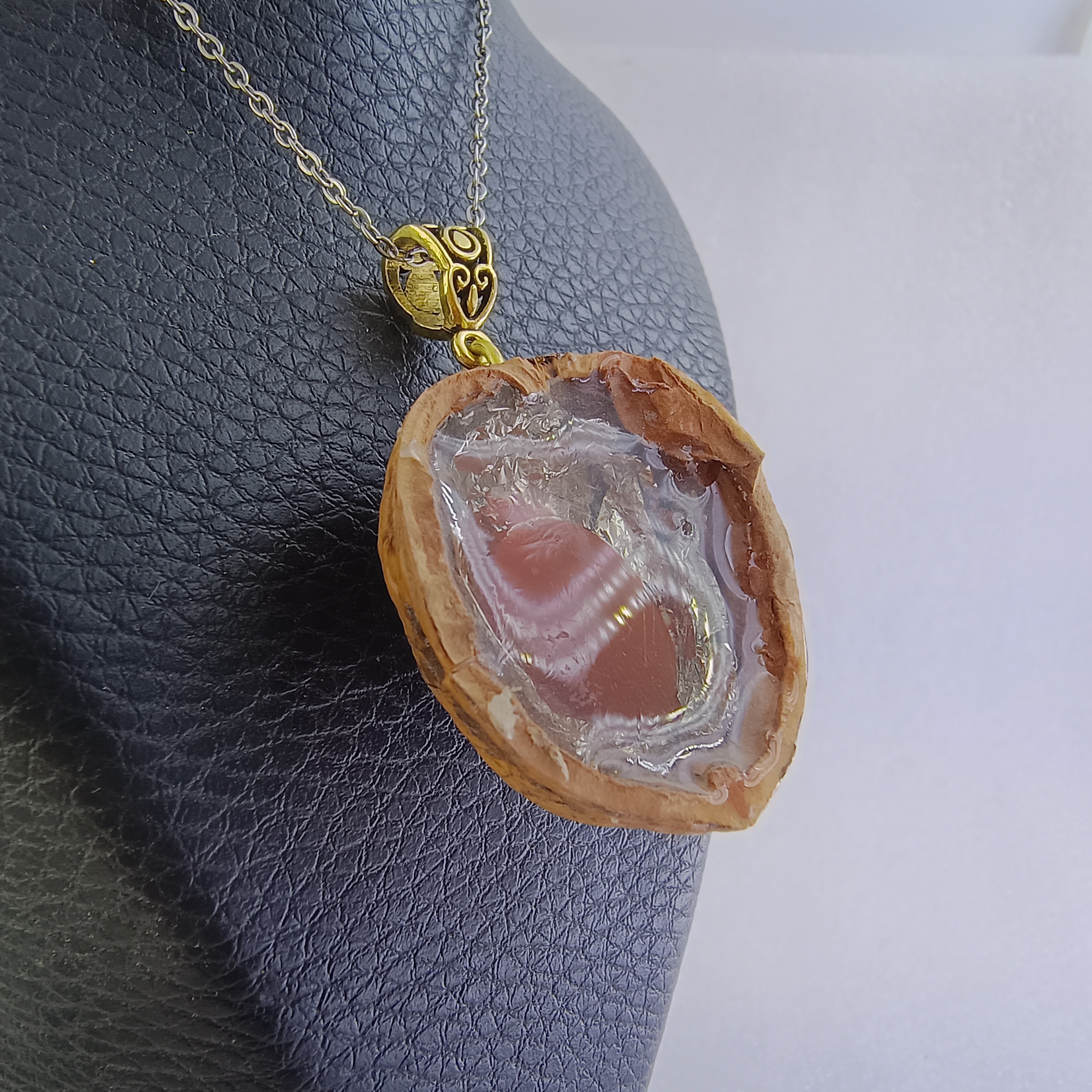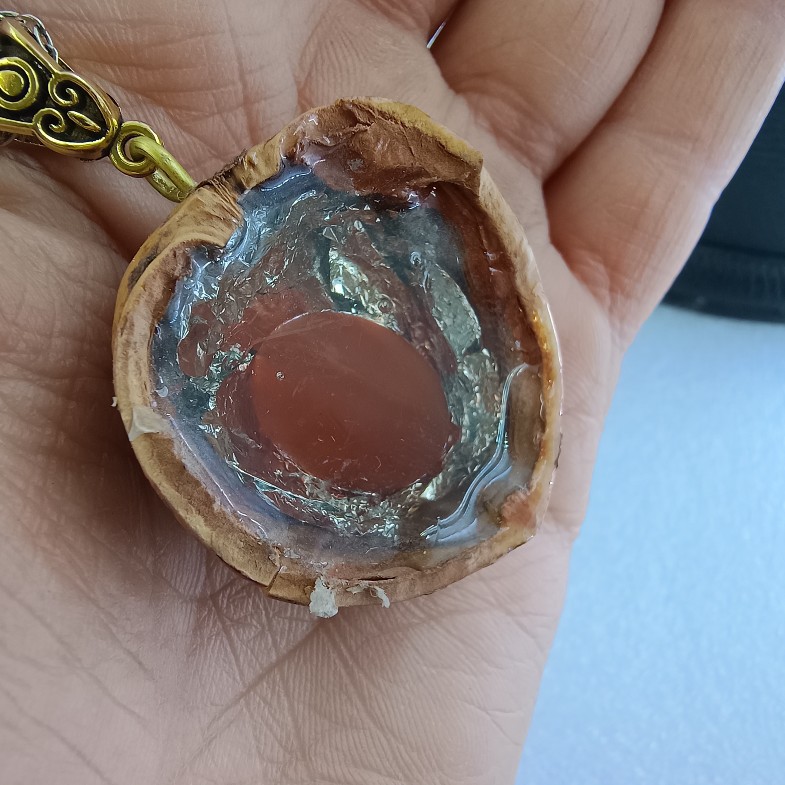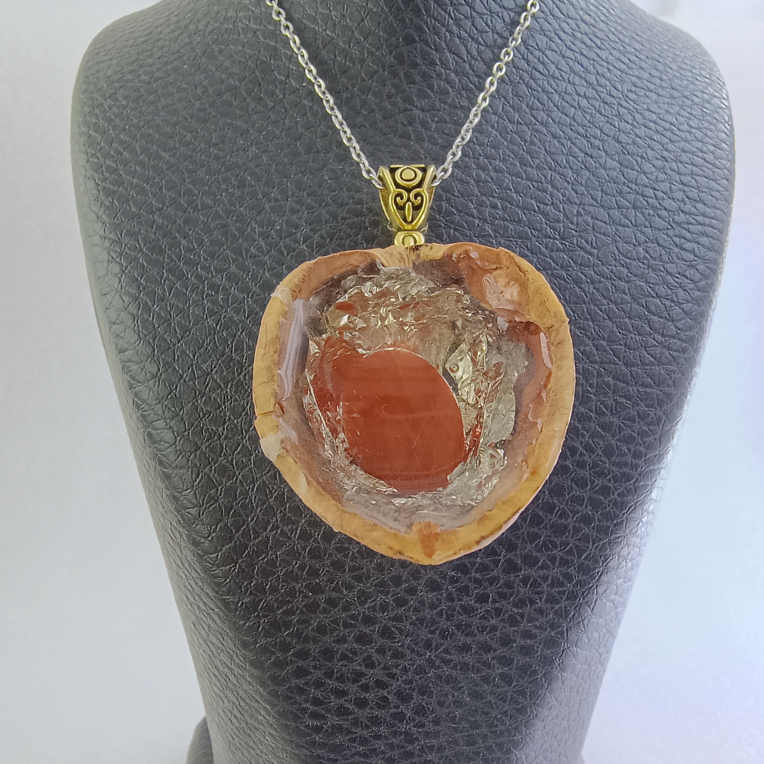 نام سنگ: عقیق سرخ با قاب پوست گردو و رزین
