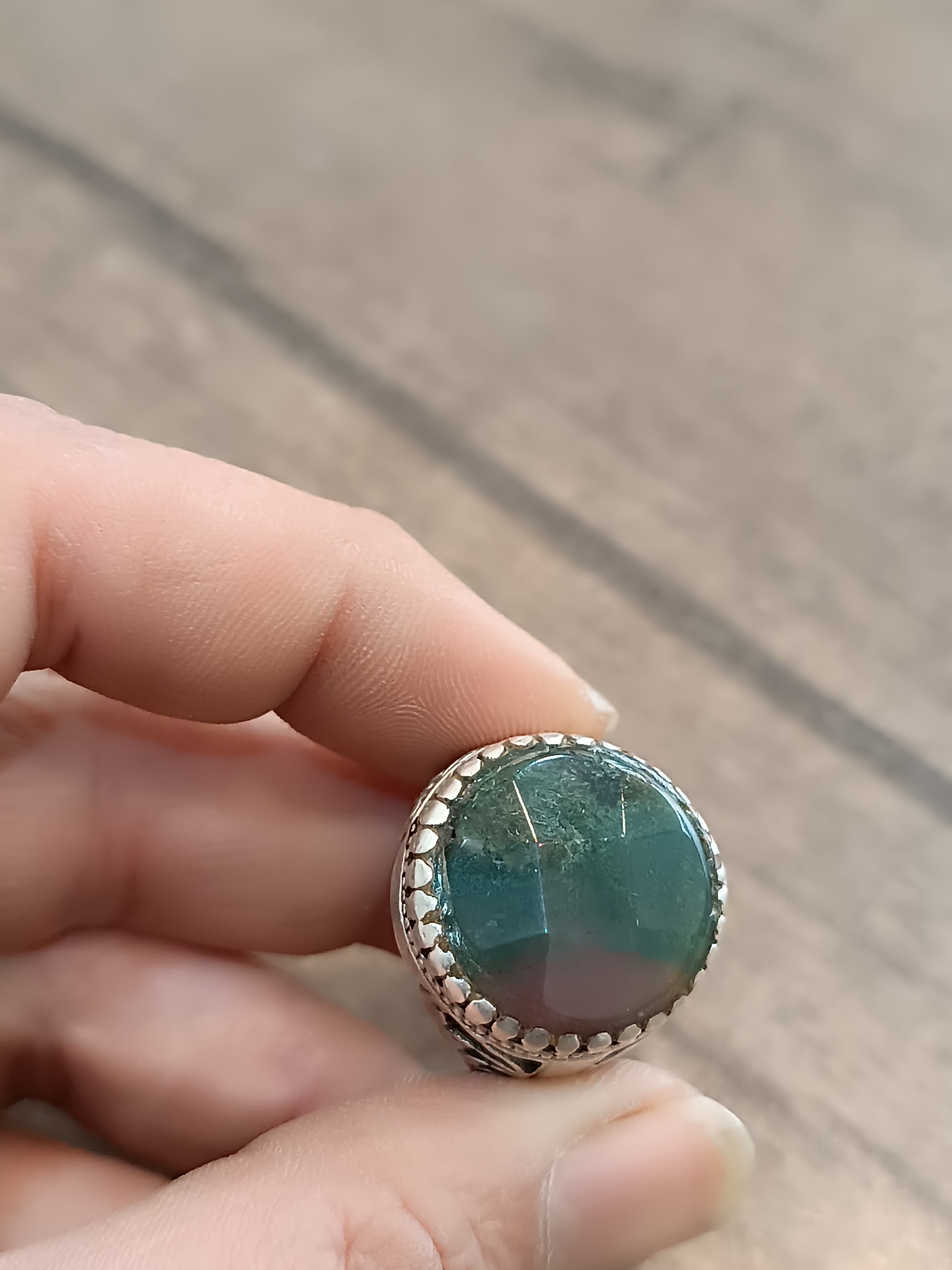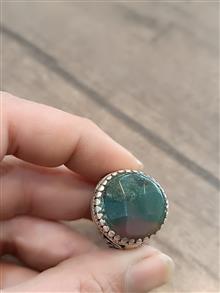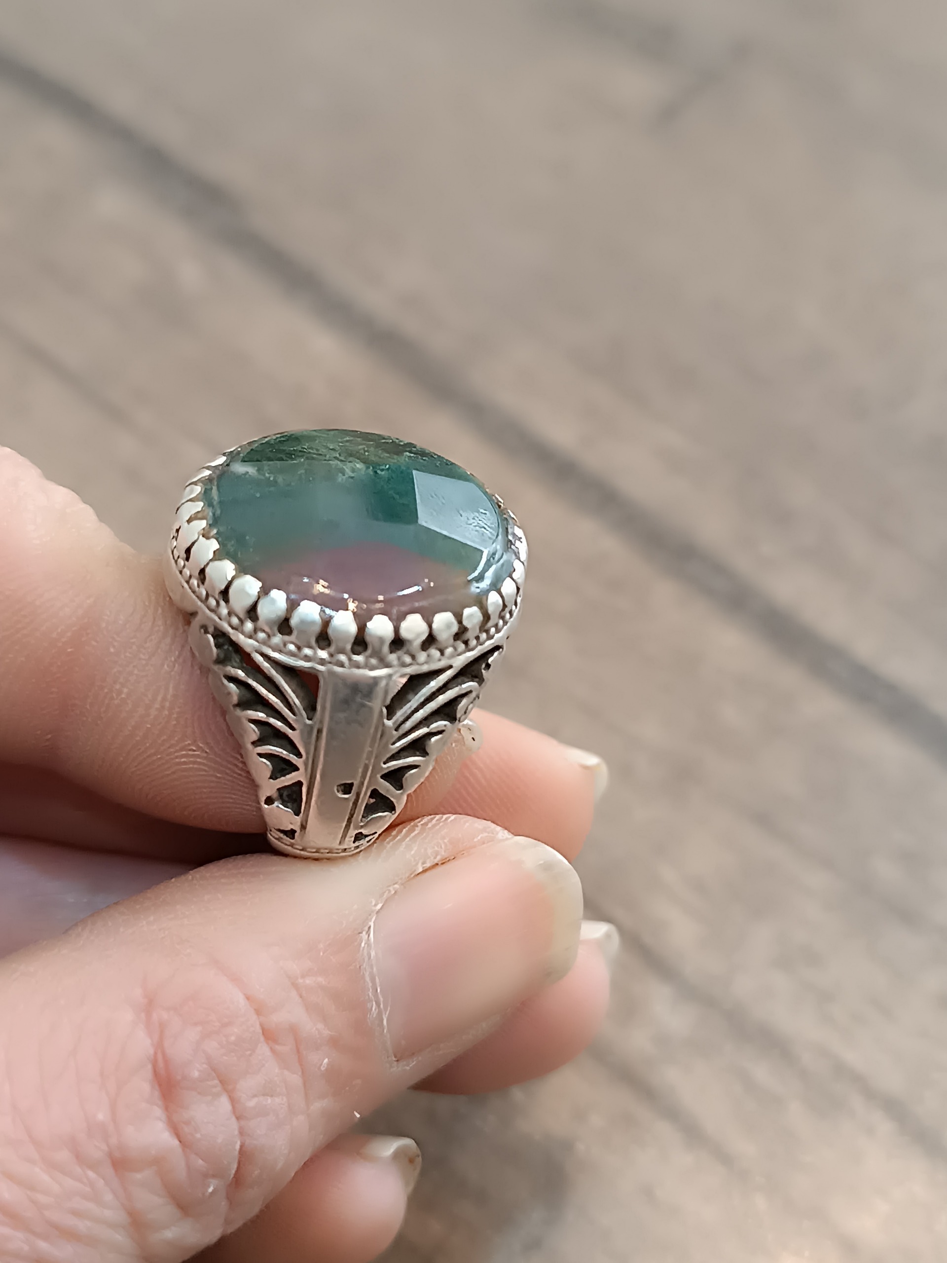 انگشتر دستساز استاد فرخاری،دومهر،همراه با نگین کمیاب بشم یه رنگ تراش خورده شجر،بسیار زیبا وفاخر،کلکسیونی وویژه،نگین انگشتر واقعا سنگ کمیابی هست و قیراطی محاسبه میشه،قیمت سنگ فقط 20میلیون به بالا هست،البته با تراش صاف،در صورتیکه تراش سنگ این انگشتر ،تراش بسیار زیبای چند ضلعی که زیبای منحصربفرد به انگشتر داده،این سنگ و انگشتر را نمیتوان همه جا پیدا کرد چون واقعاً سنگ خاصی هست ،در ضمن سنگ این انگشتر از نوع شجر یشم سه رنگ هست که خودش واقعا خاص وتک هست،خریداران توجه کنند که یه مورد خاص وتک دارند خریداری میکنند