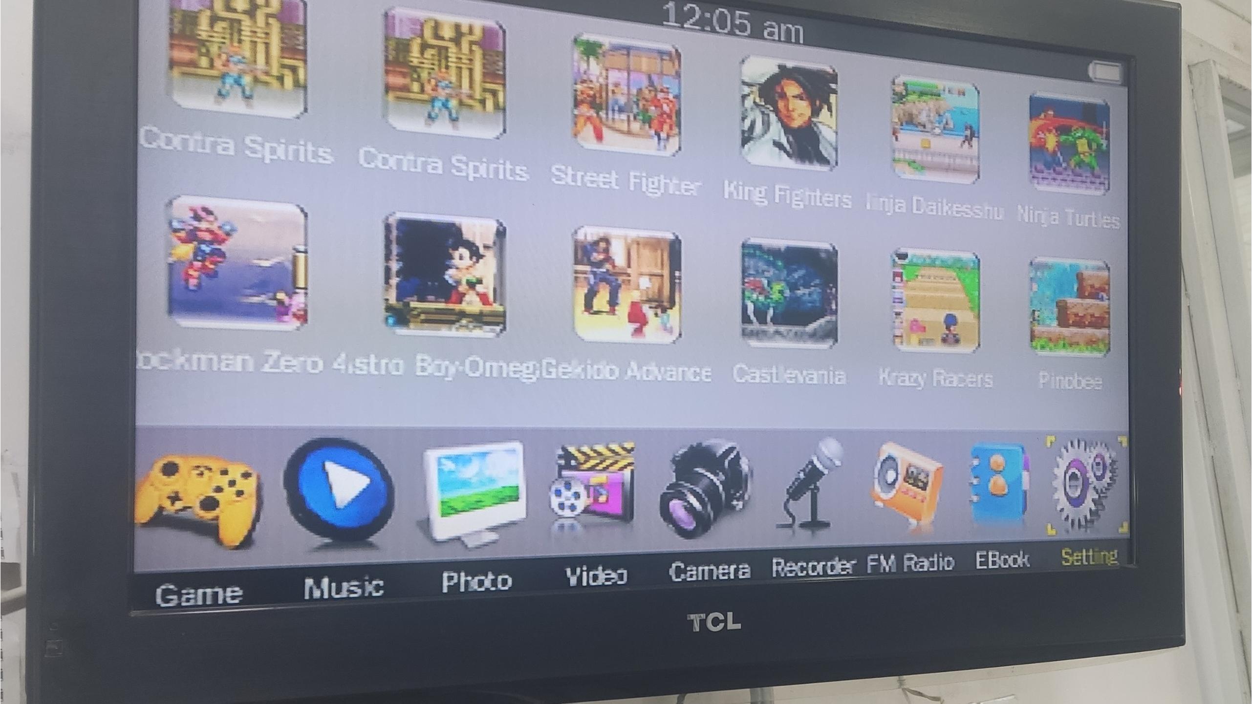 کنسول دستی با قابلیت اجرای بازیهای آتاری 2600، فامیکام (میکرو)، سوپرفامیکام (سوپرنینتندو)، گیم بوی، گیم بوی کالر، گیم بوی ادونس. سگا مگادرایو.