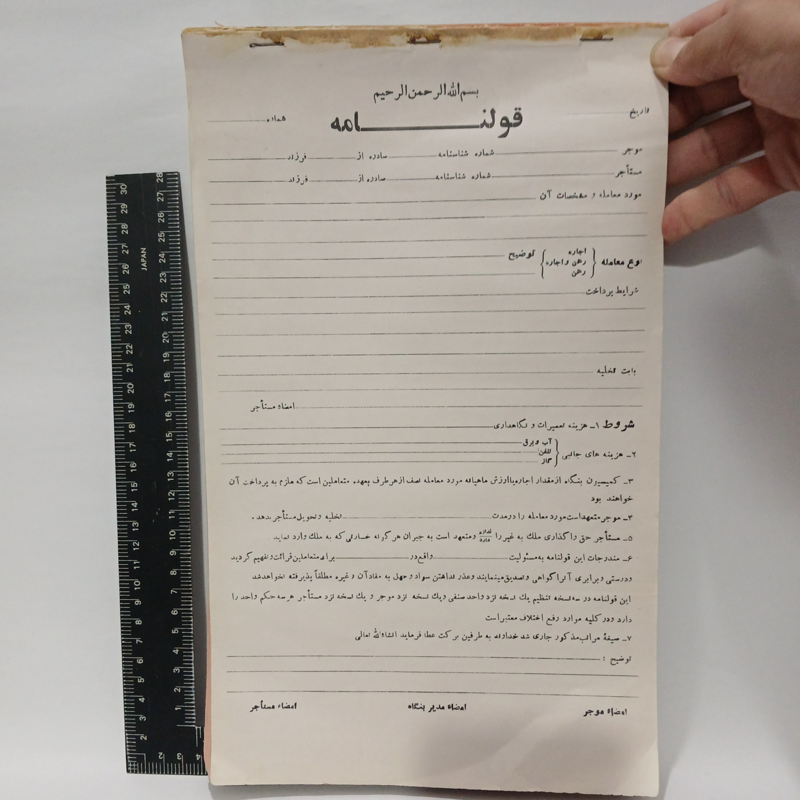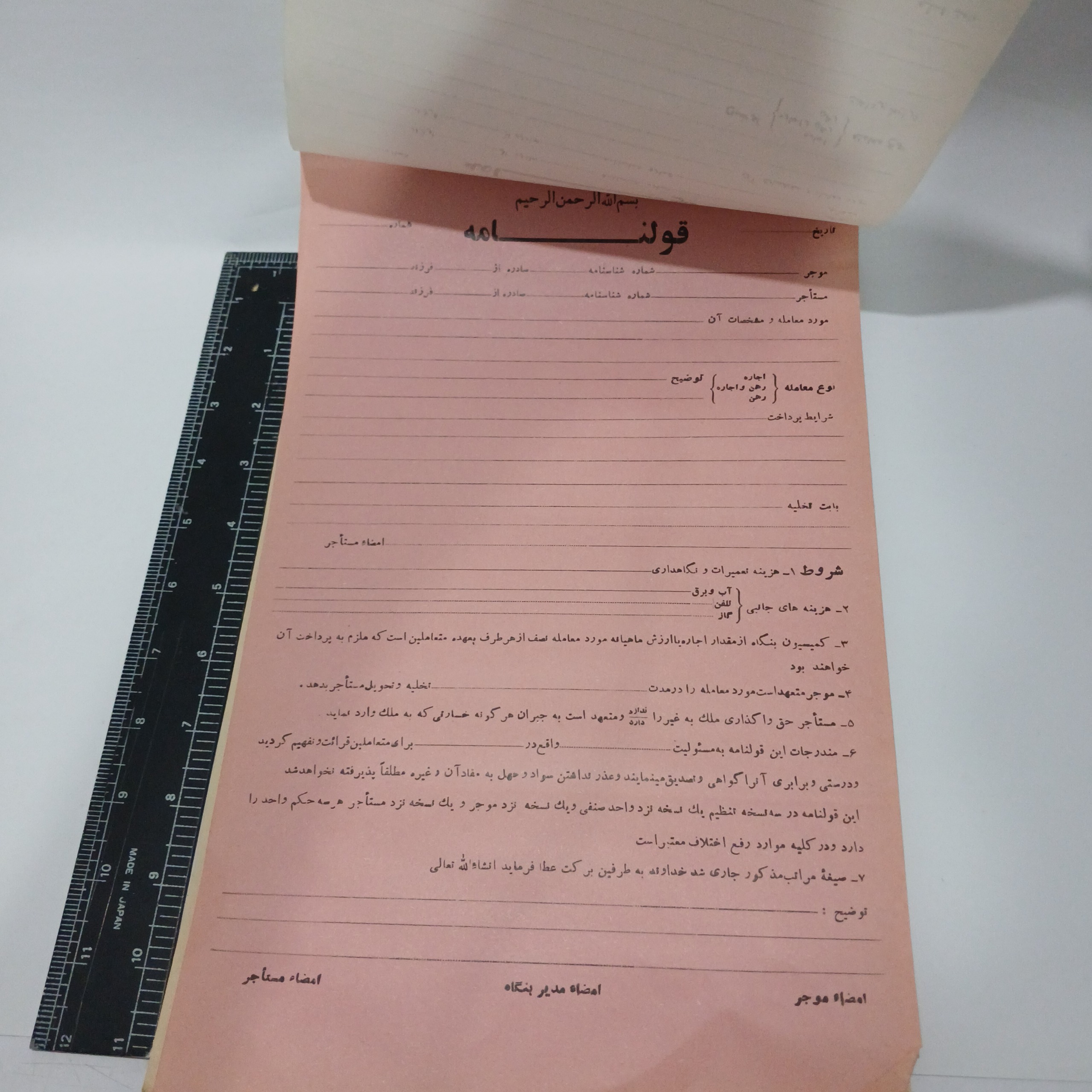 3 برگ قولنامه قدیمی اجاره (پک کامل) با 3 رنگ مختلف پشت سر هم: