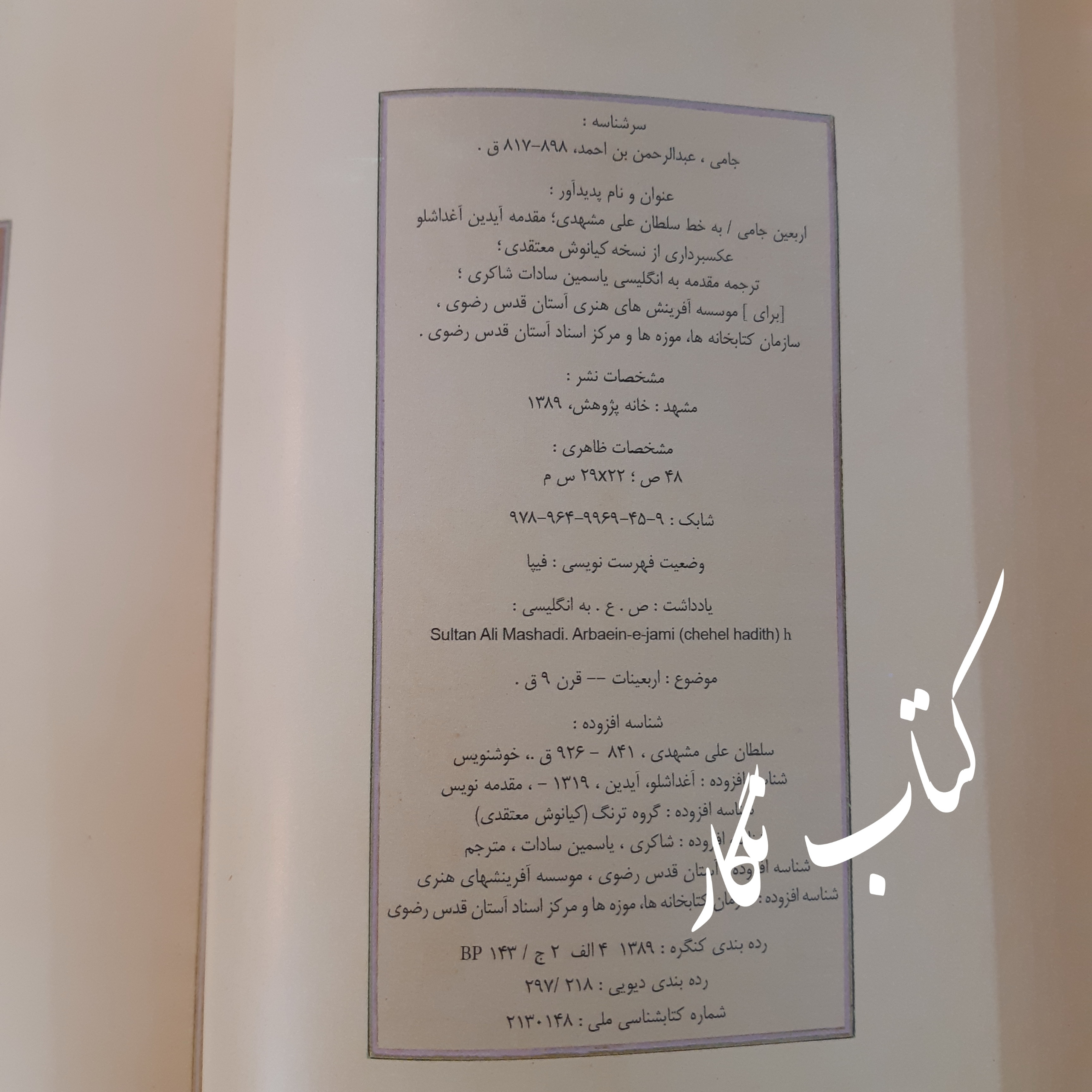 اربعین جامی (بخط سلطانعلی مشهدی) گلاسه رنگی