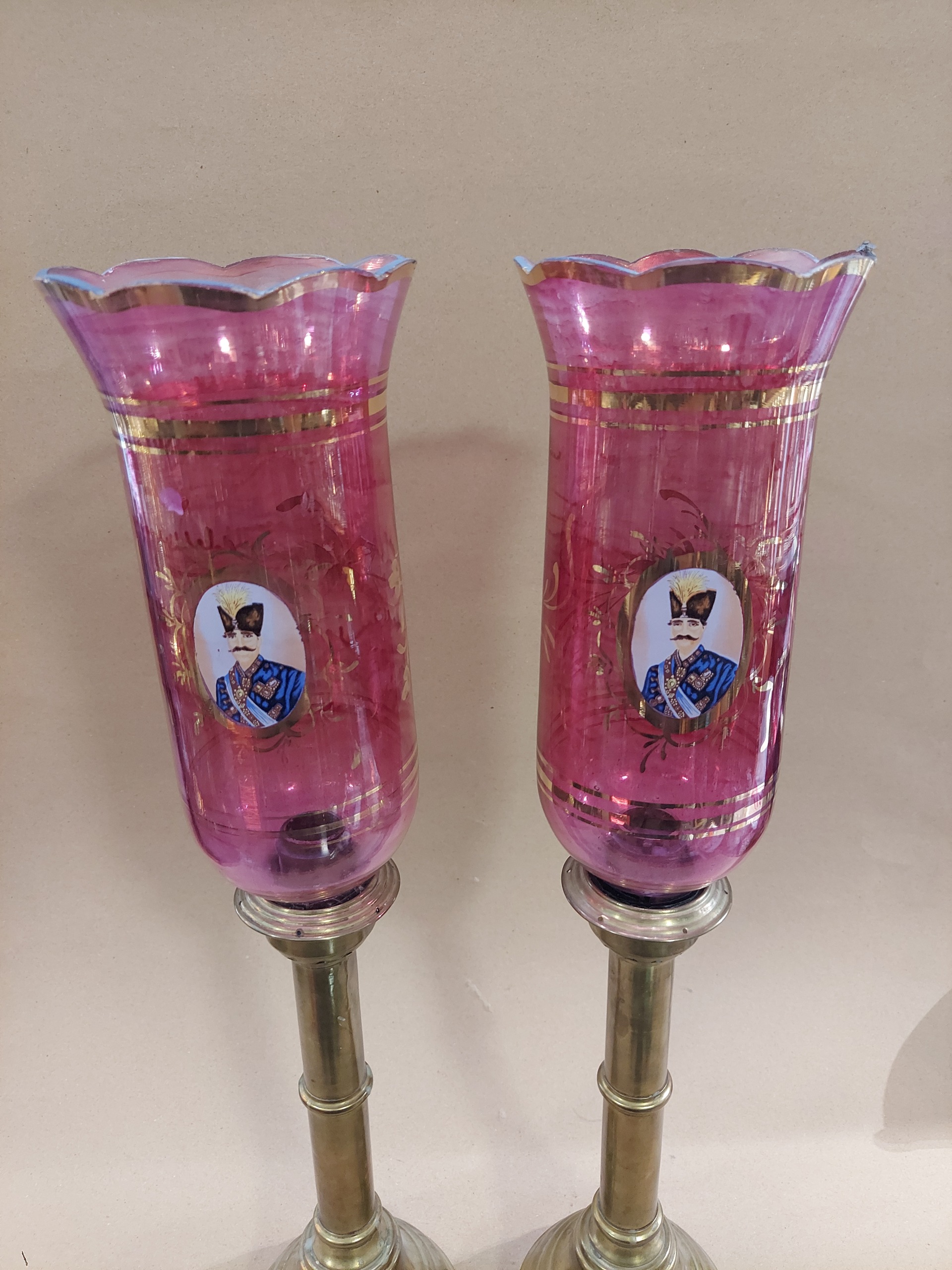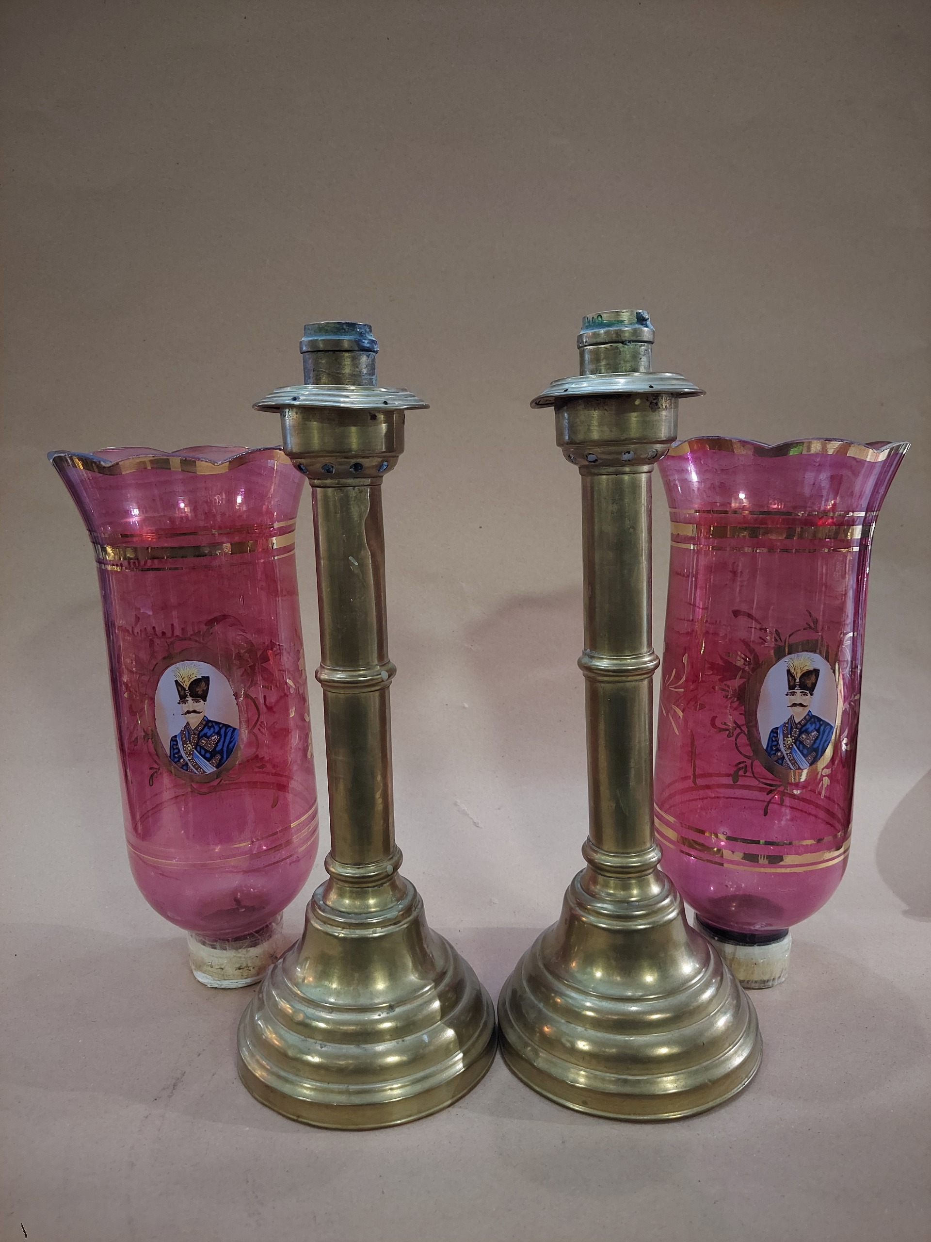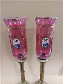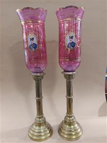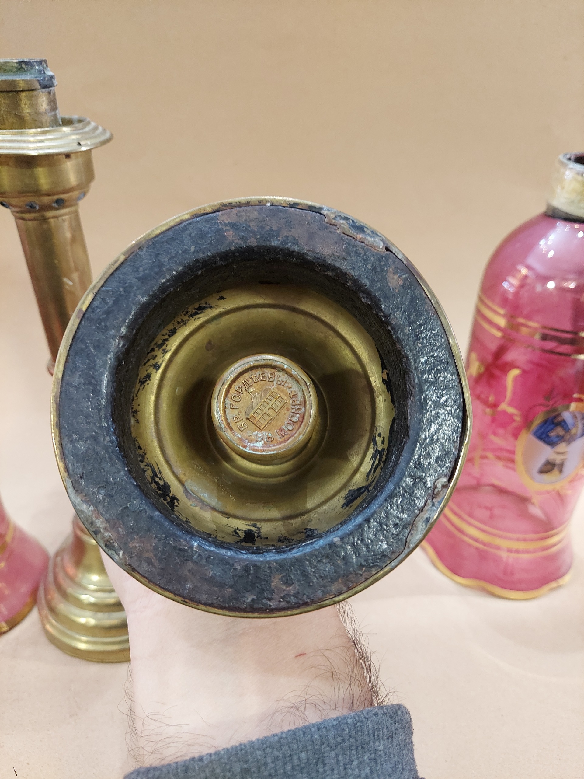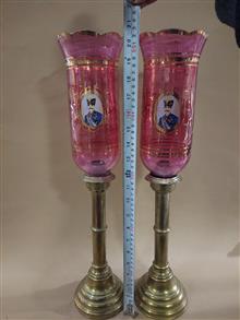 جفت شمعدان روسی کهنه سنگین وزن برنجی