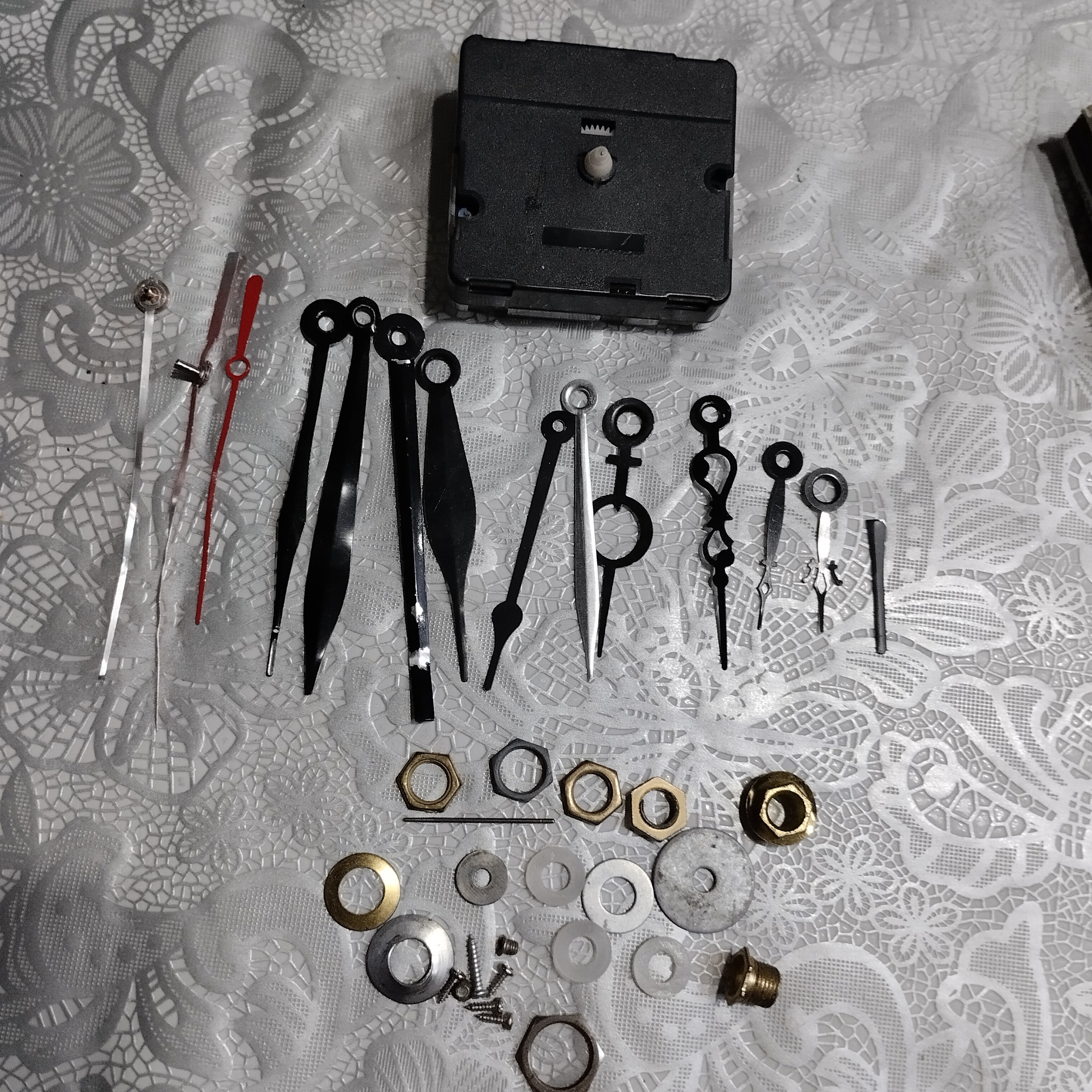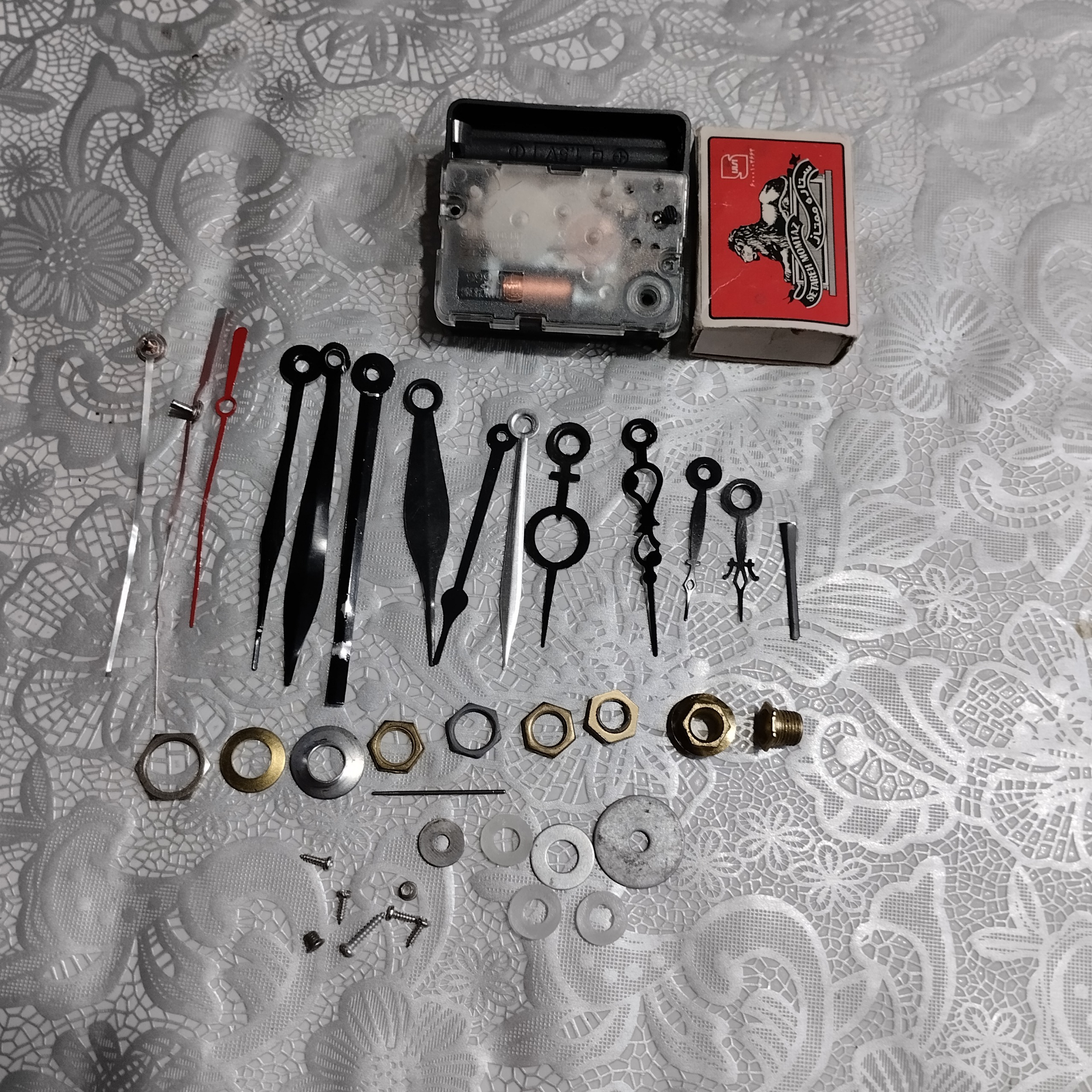 انواع عقربه و پیچ و مهره و یک عدد موتور ساعت