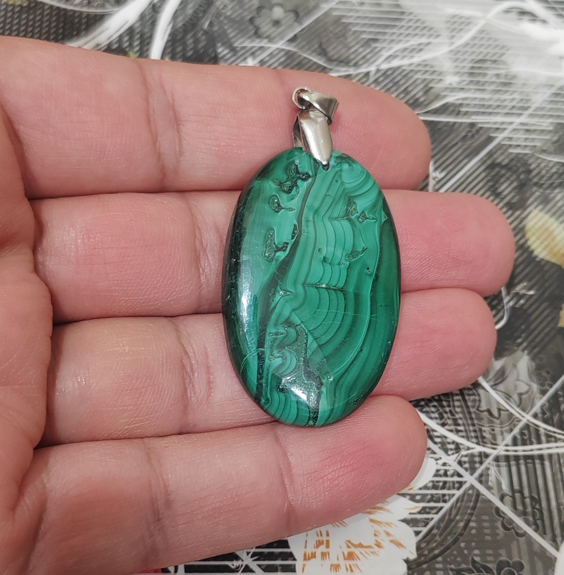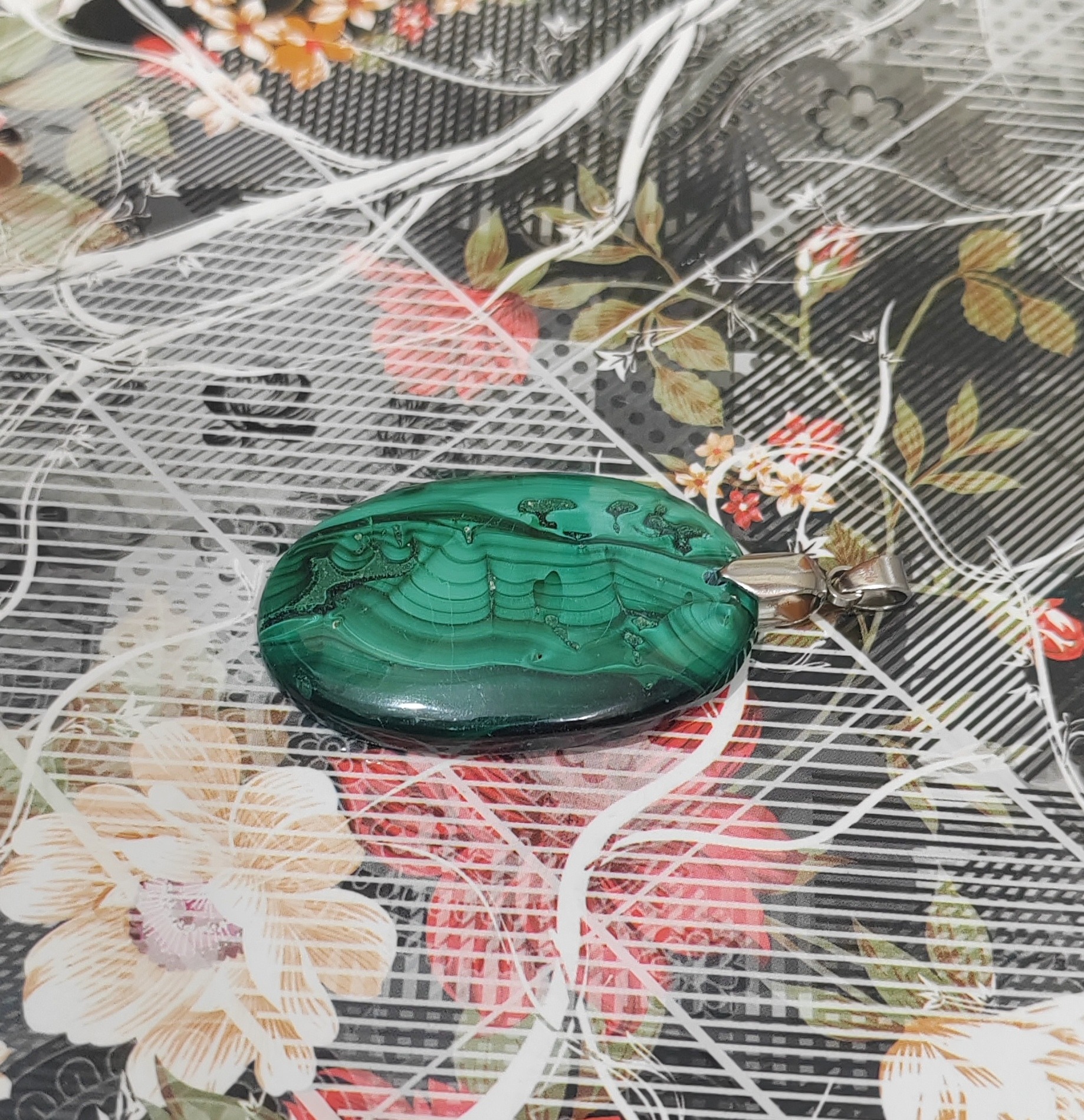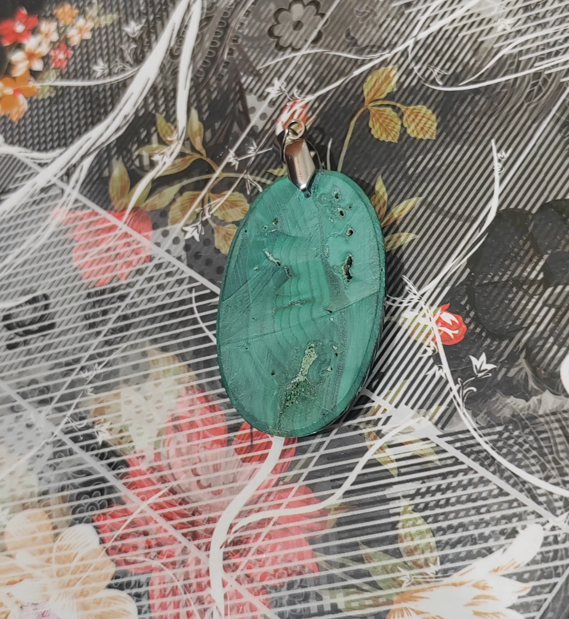 گردن آویز سنگ مالاکیت معدنی کد 14
