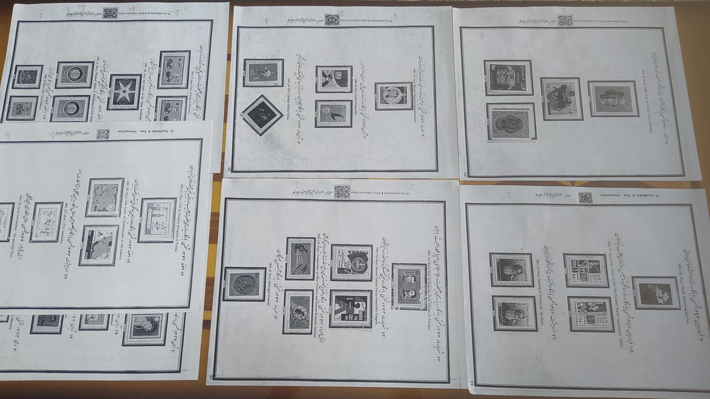 2بلوک و سه عدد تمبر نو ارزشمند بهمراه 7 برگ مصور خام , از تمبر دوران پهلوی سال1343 . بر روی کاغذ  B4 که از کاغذ À4 بزرگتر میباشد اندازه برگه ها کاغذ به همان اندازه برگه های مقوایی آلبوم مصور و بدون طبق میباشد میباشد