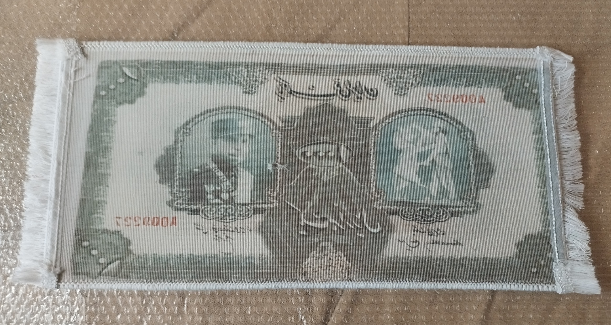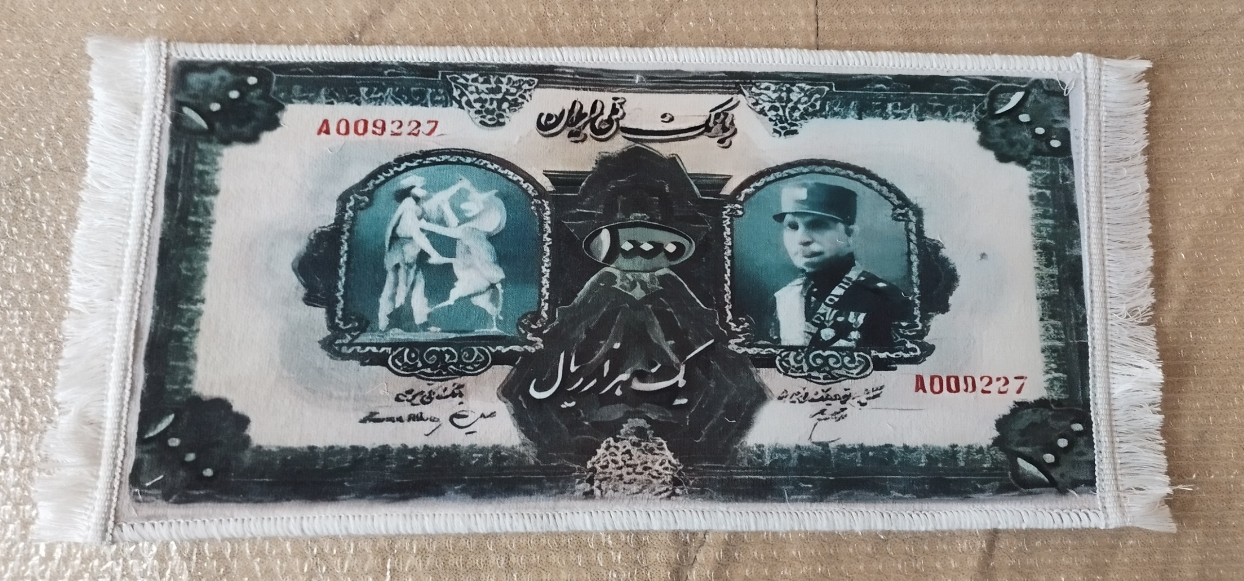 تابلو فرش سایز بزرگ طرح اسکناس رضا شاه