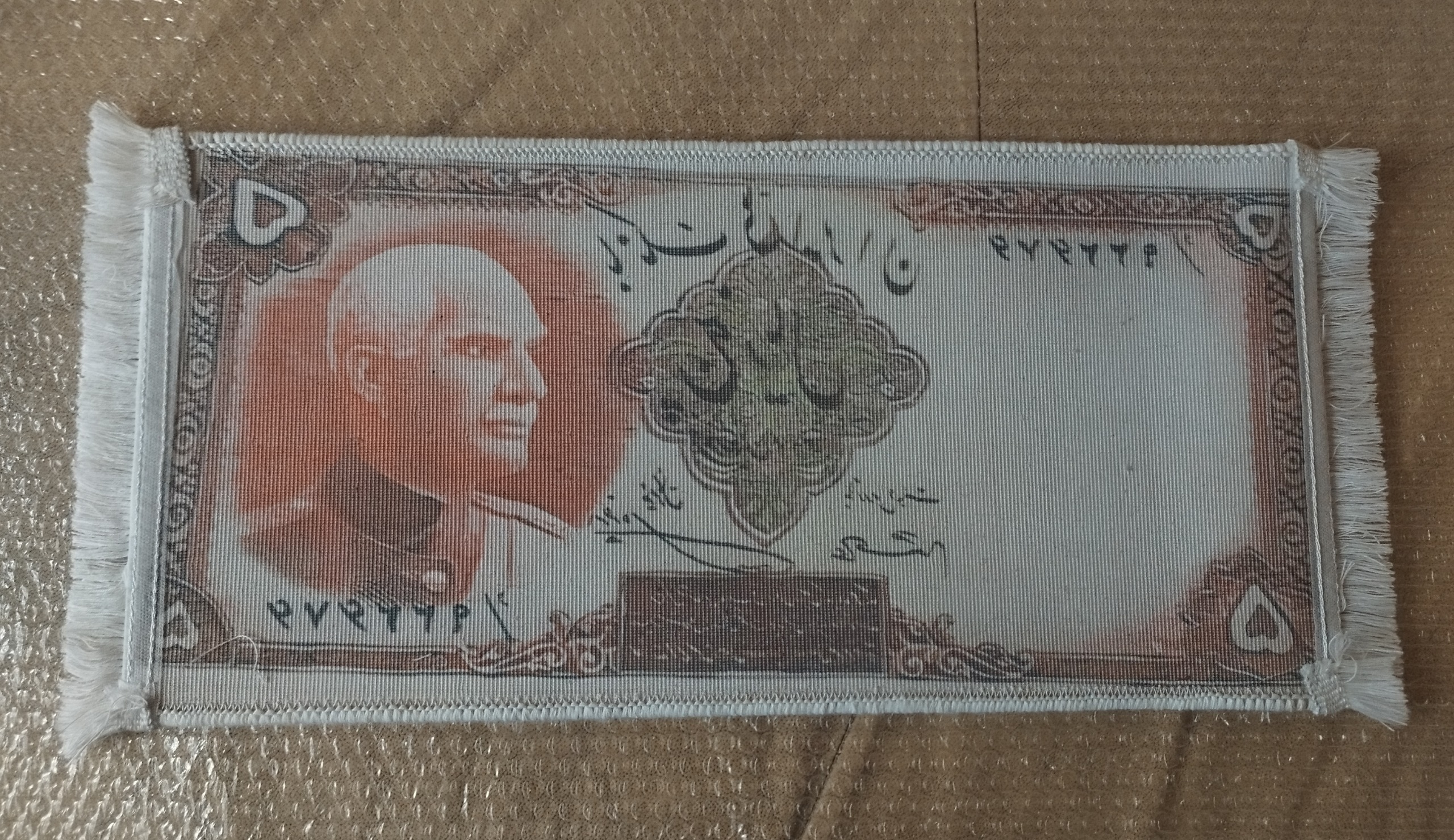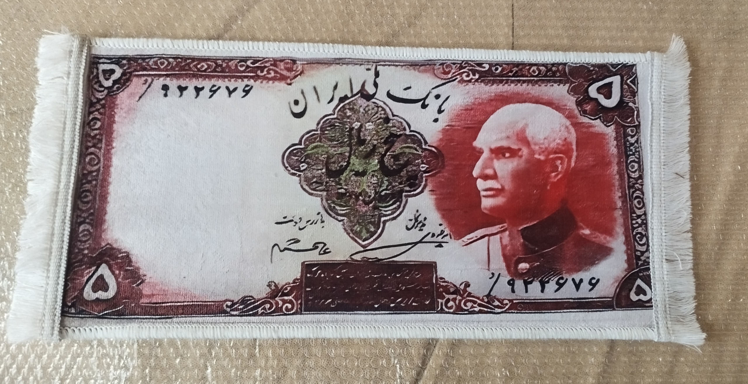 تابلو فرش سایز بزرگ طرح اسکناس رضا شاه