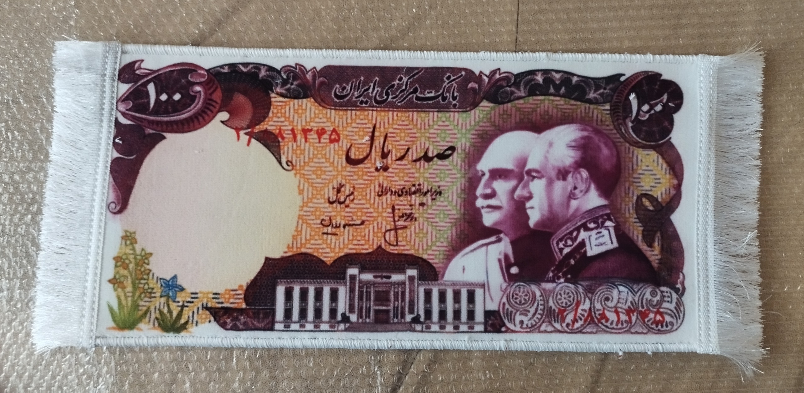 تابلو فرش سایز بزرگ طرح اسکناس محمدرضا پهلوی