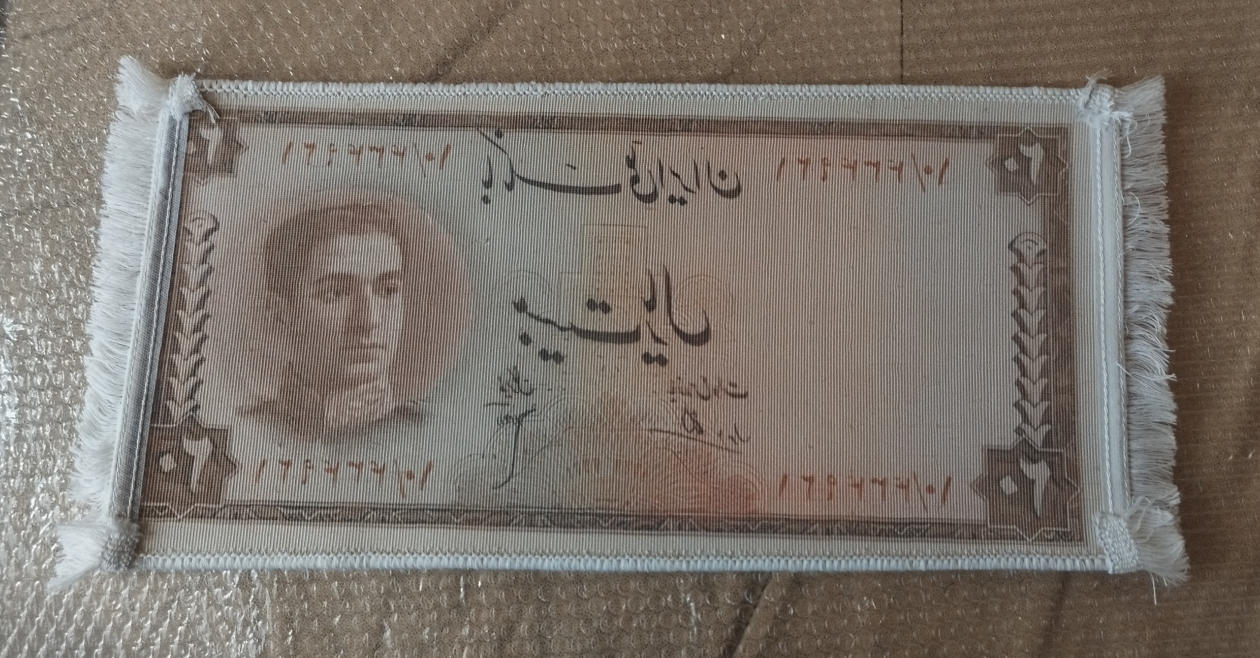 تابلو فرش سایز بزرگ طرح اسکناس محمدرضا پهلوی
