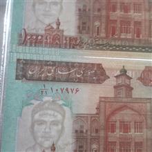 توجه:فیلیگران اسکناس شماره107975بی یقه واسکناس شماره107976با یقه میباشد ودو جفت اسکناس دیگر اسکناسهای قبل وبعد از ارور هستند که شناسنامه محسوب میشوند.امضا هر سه جفت اسکناس نمازی-نور بخش است