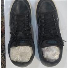 یک جفت کفش آدیداس اصل به اندازه 46،66 که در اتیکت آن سایز آمریکایی آن 12 و فرانسه که مشابه ایرانه 46،66 که 66/. منظور دوسومه.