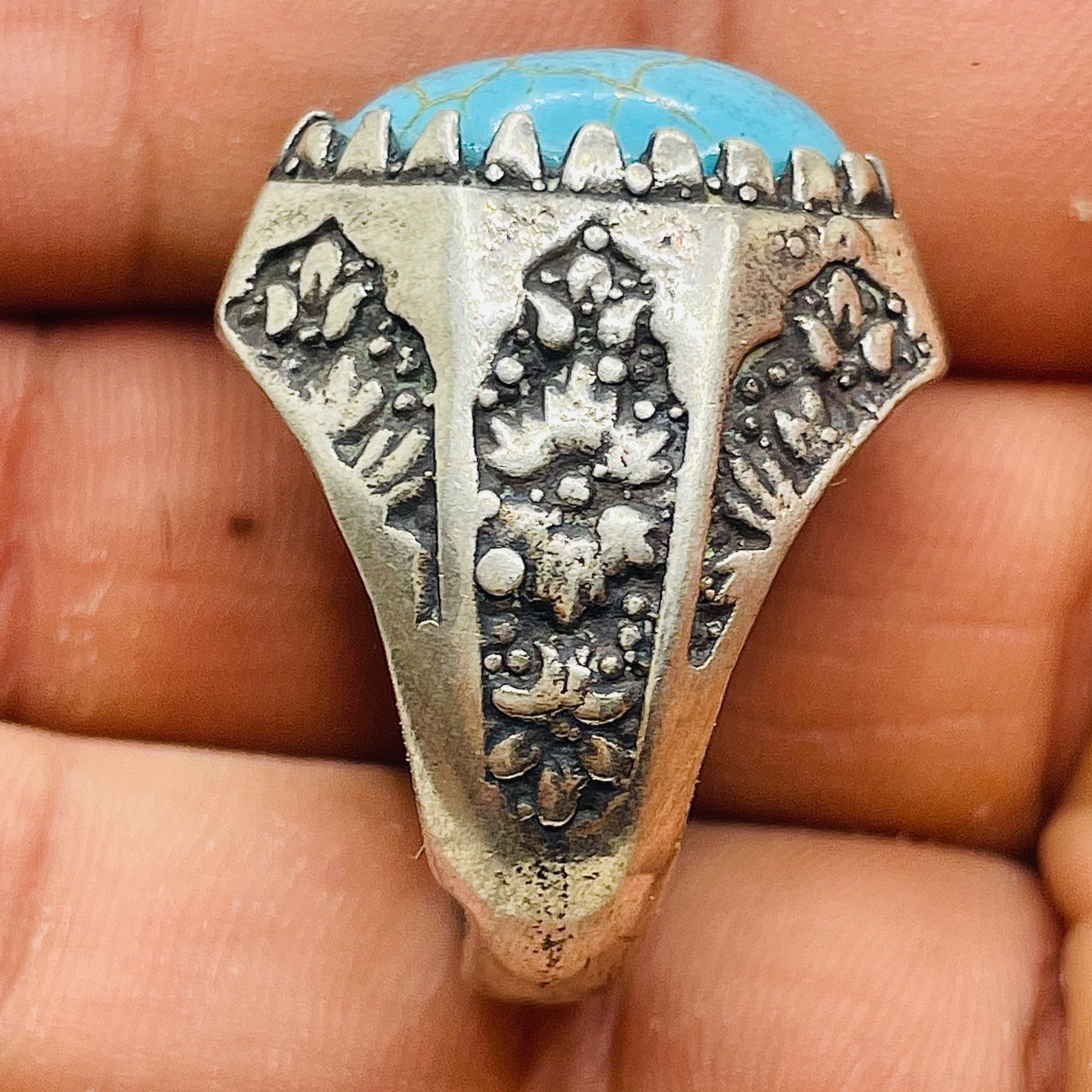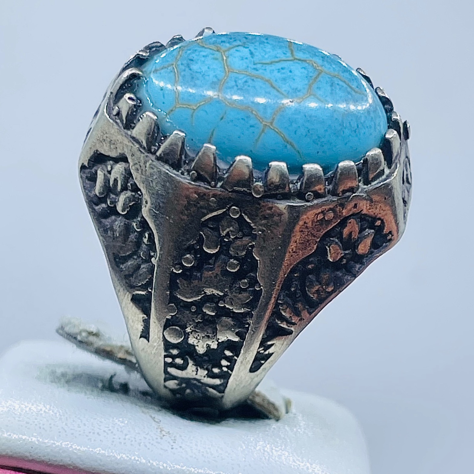 انگشتر فیروزه بکر محک مصری خوش رخ و درشت مردانه