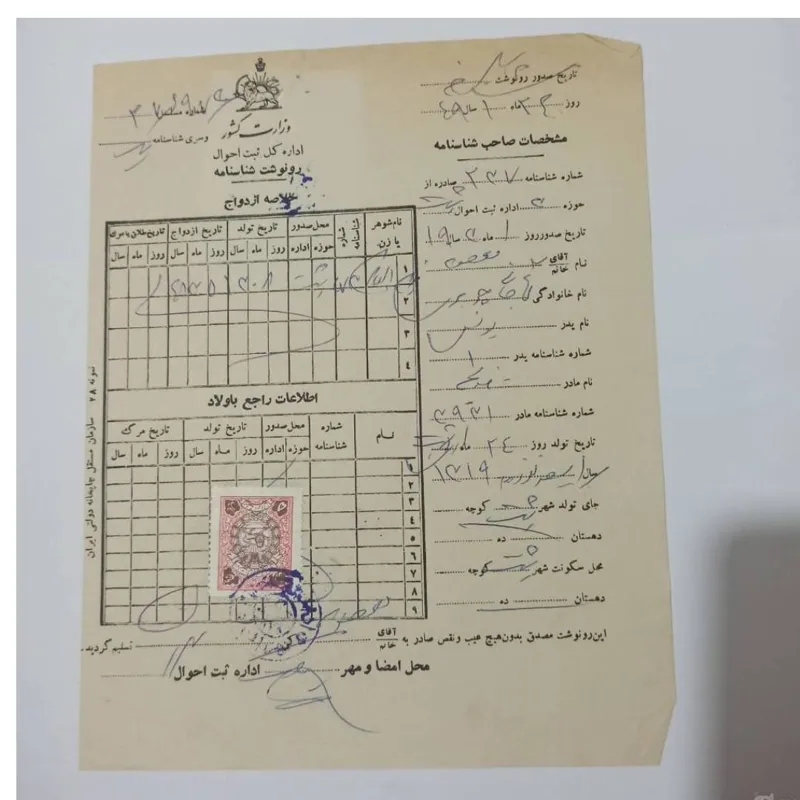 اوراق قدیمی با تمبر و مهر ثبت احوال شهر رشت 1349