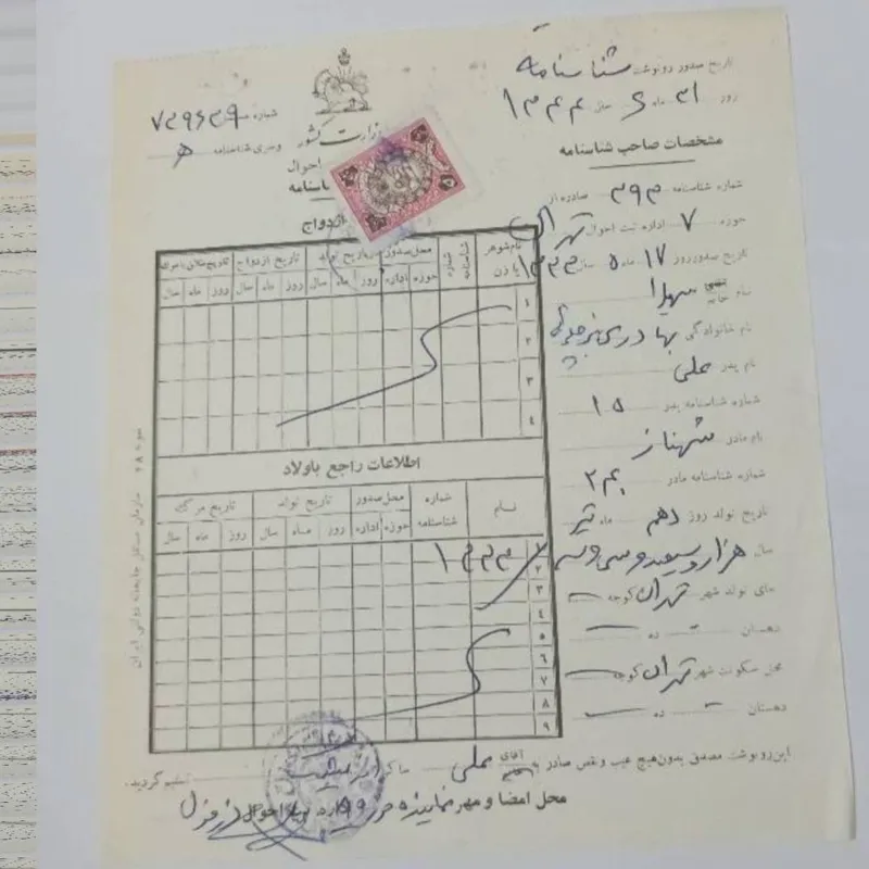 اوراق قدیمی با تمبر و مهر ثبت احوال شهر تهران 1344