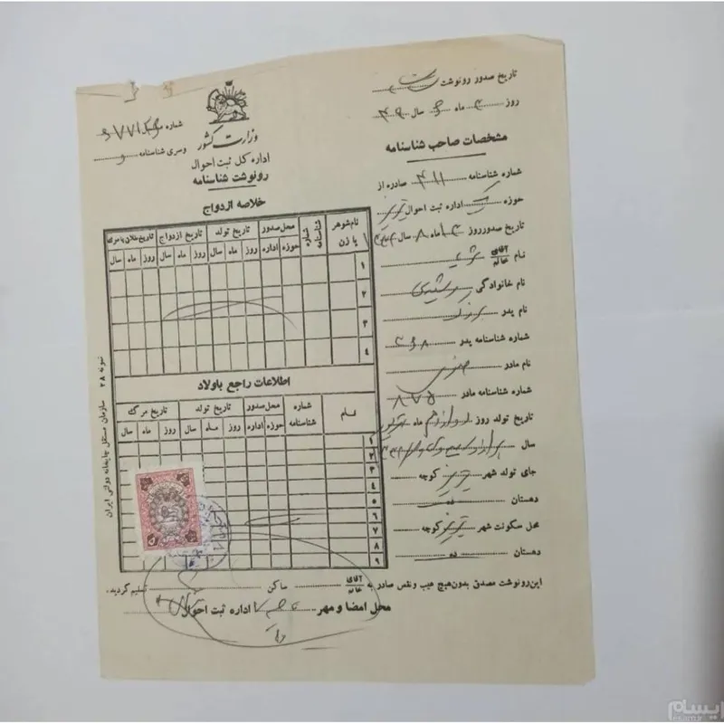 اوراق قدیمی با تمبر و مهر ثبت احوال شهر تبریز