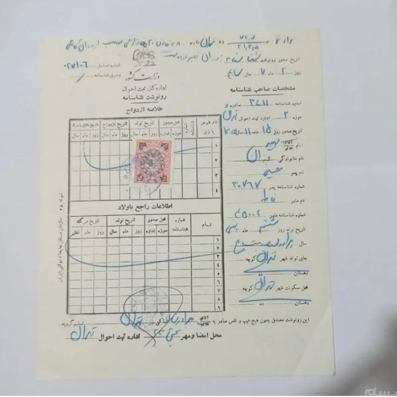 اوراق قدیمی با تمبر و مهر ثبت احوال شهر تهران 1347