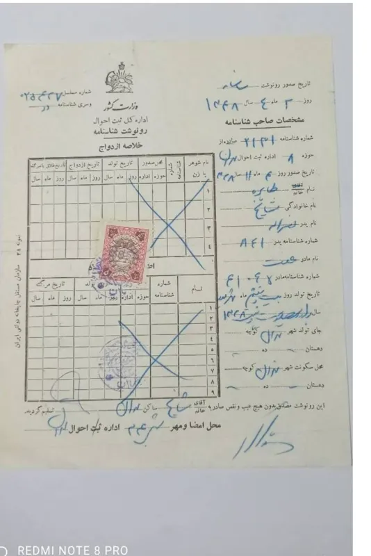 اوراق قدیمی با تمبر و مهر ثبت احوال شهر تهران 1348