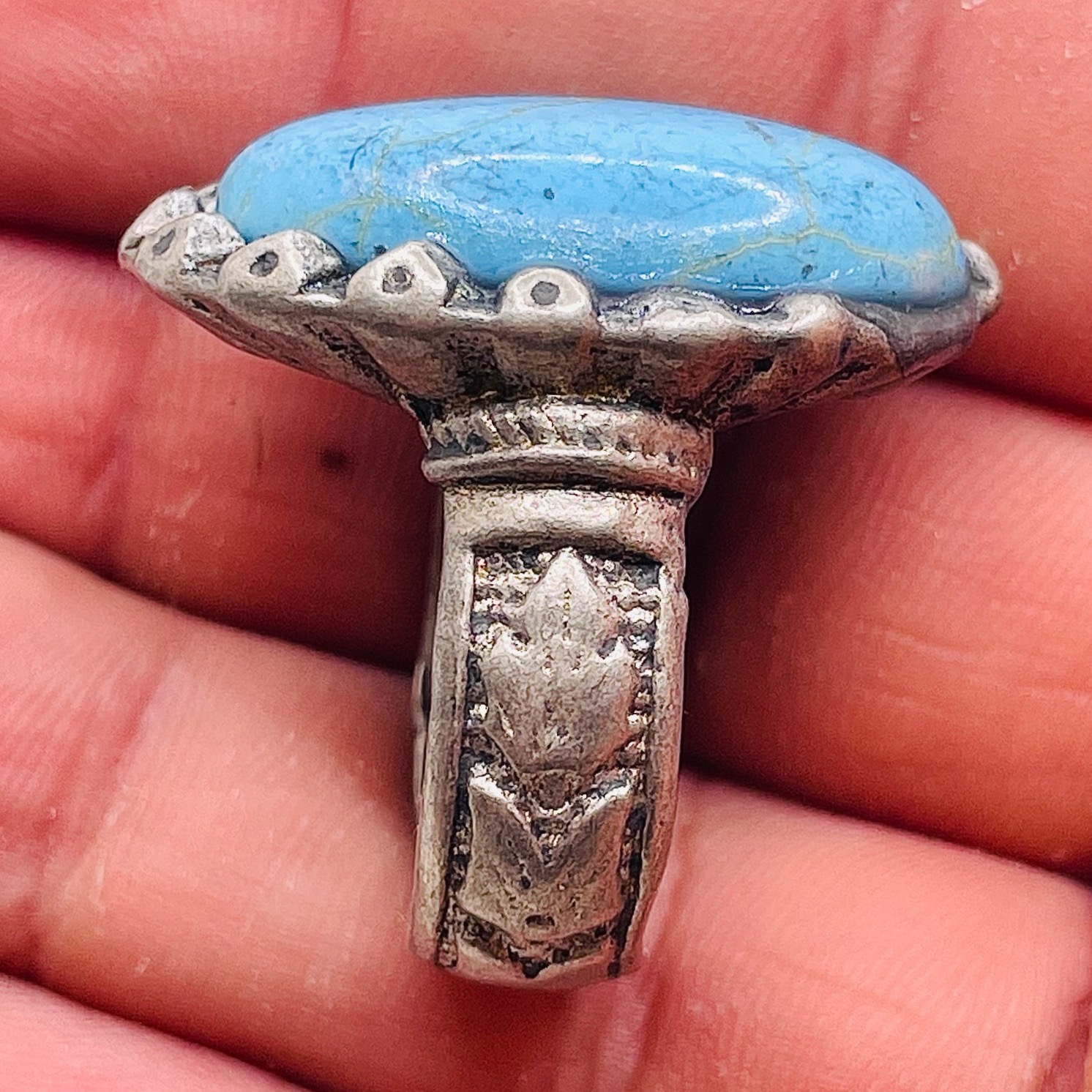 انگشتر فیروزه هائولیتی مصر زینتی کهنه رکاب فابریکی