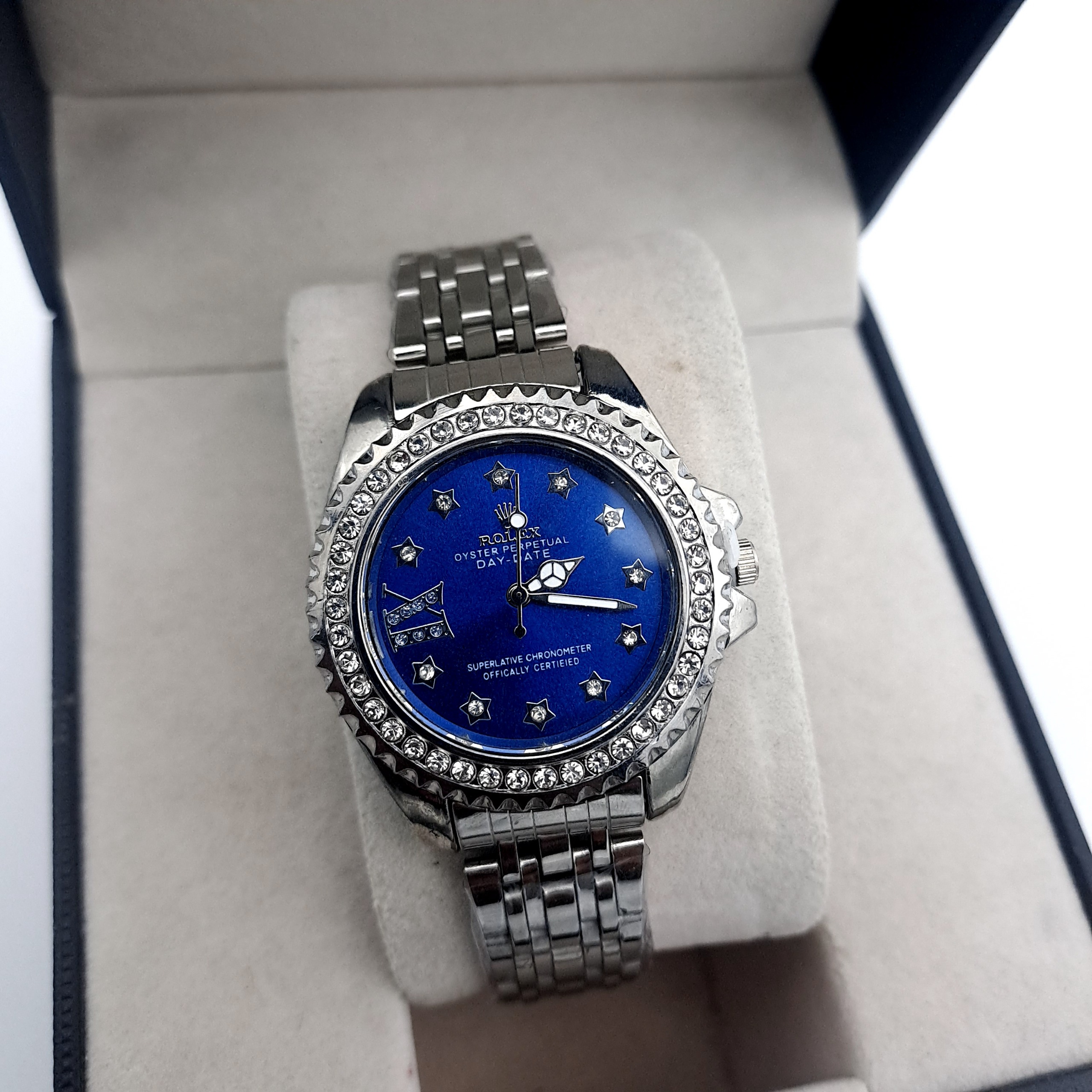 ساعت رولکس زنانه صفحه ابی دور نگین