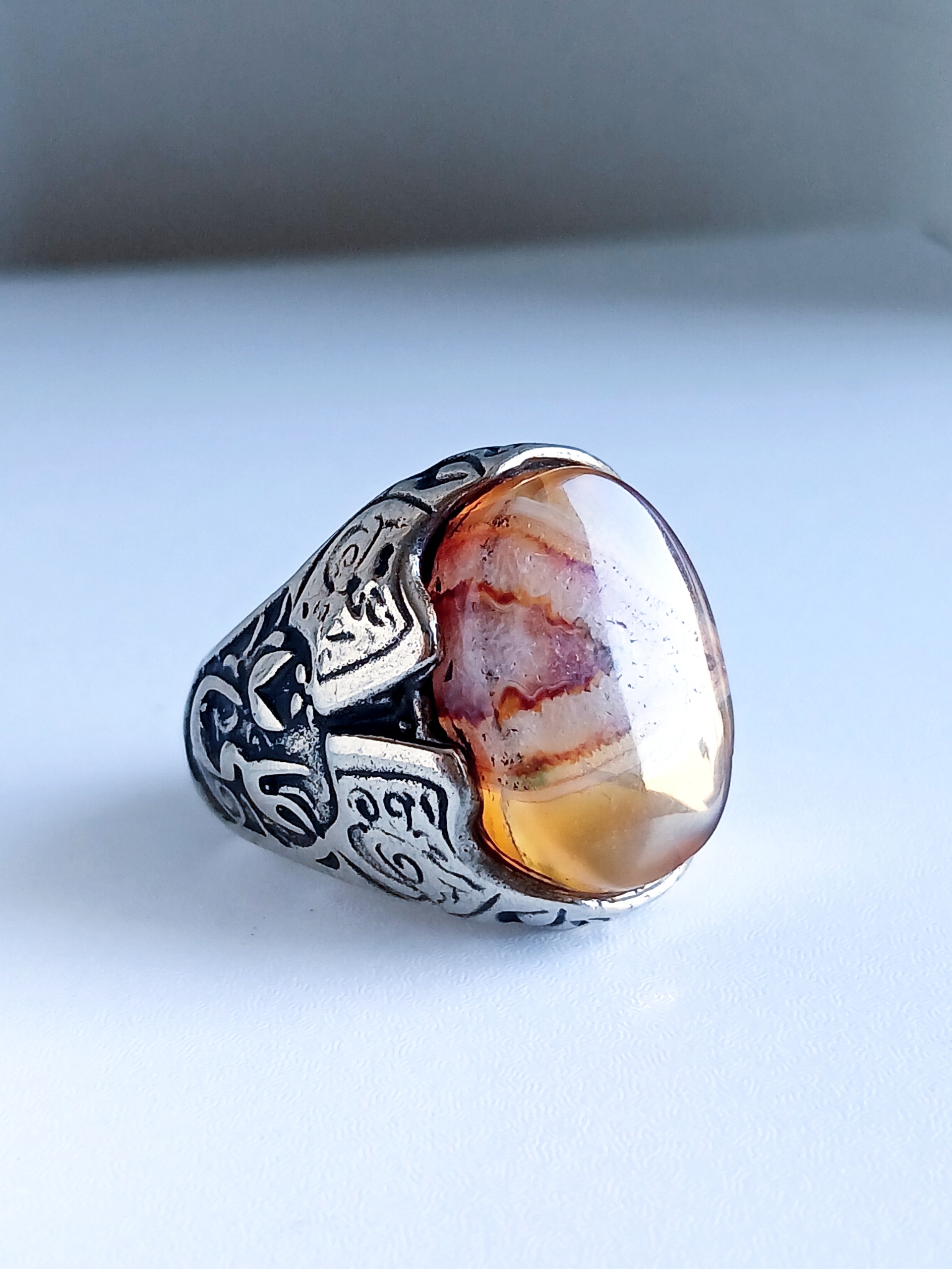 انگشتر عقیق سلیمانی زکاب درشت وغول علی