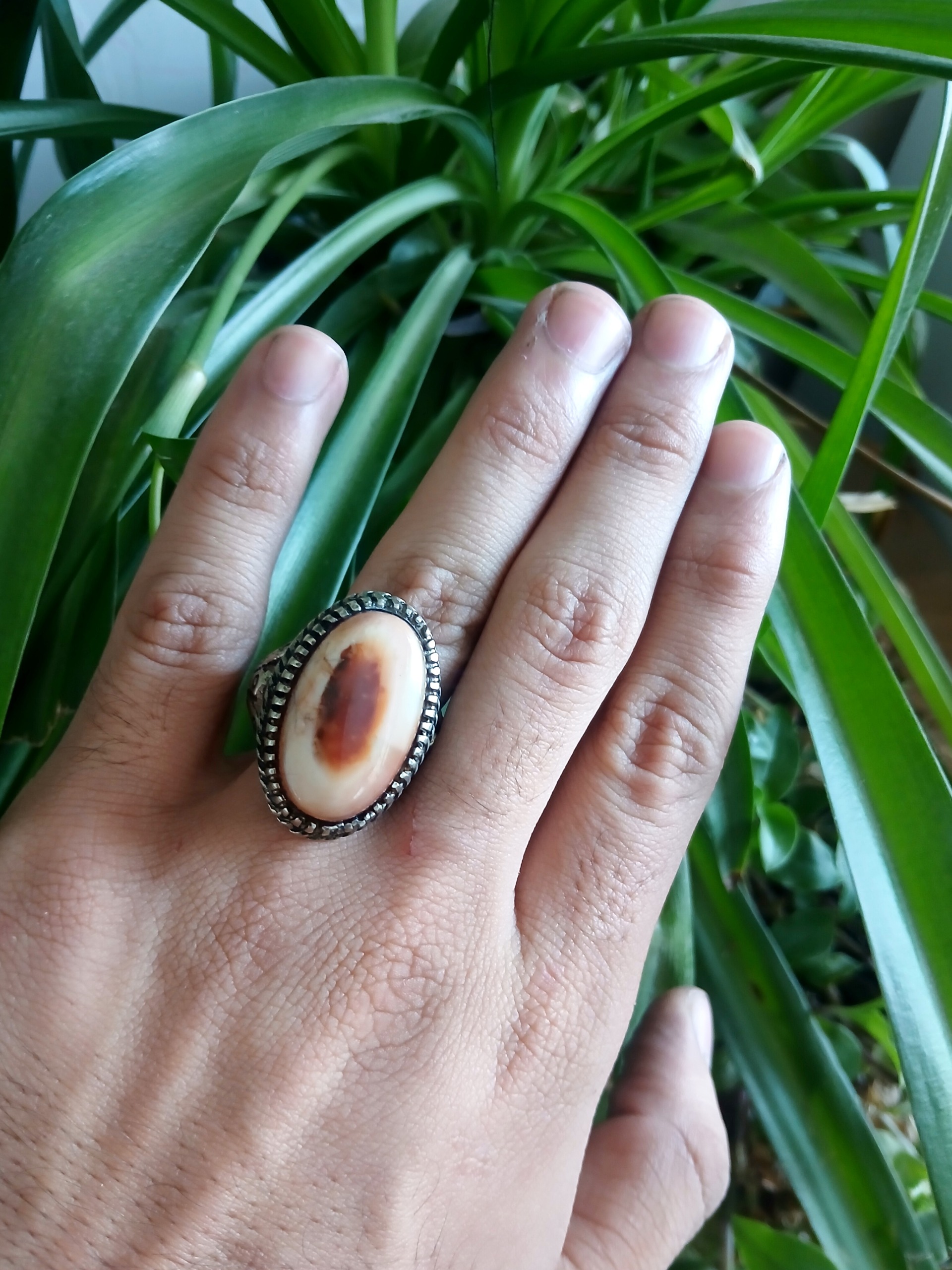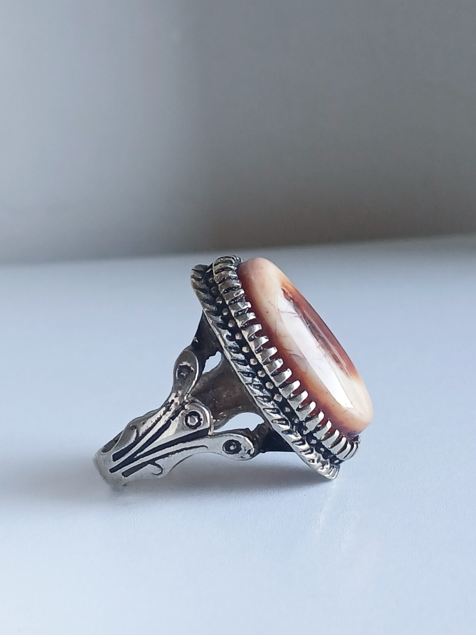 انگشتر عقیق دوپوست رکاب مرتفع کلکسیونی