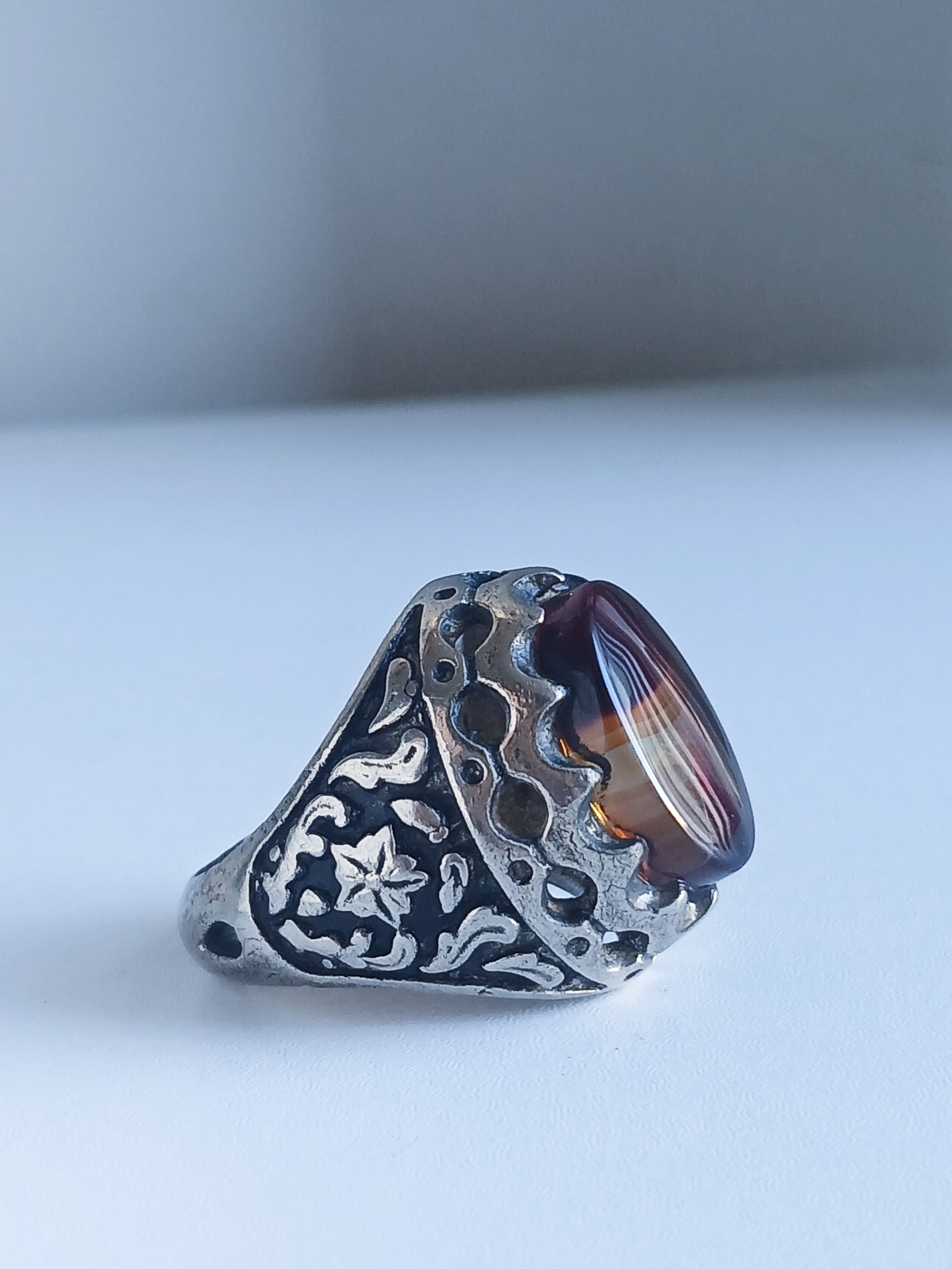 انگشتر عقیق سلیمانی رکاب طرح قلم